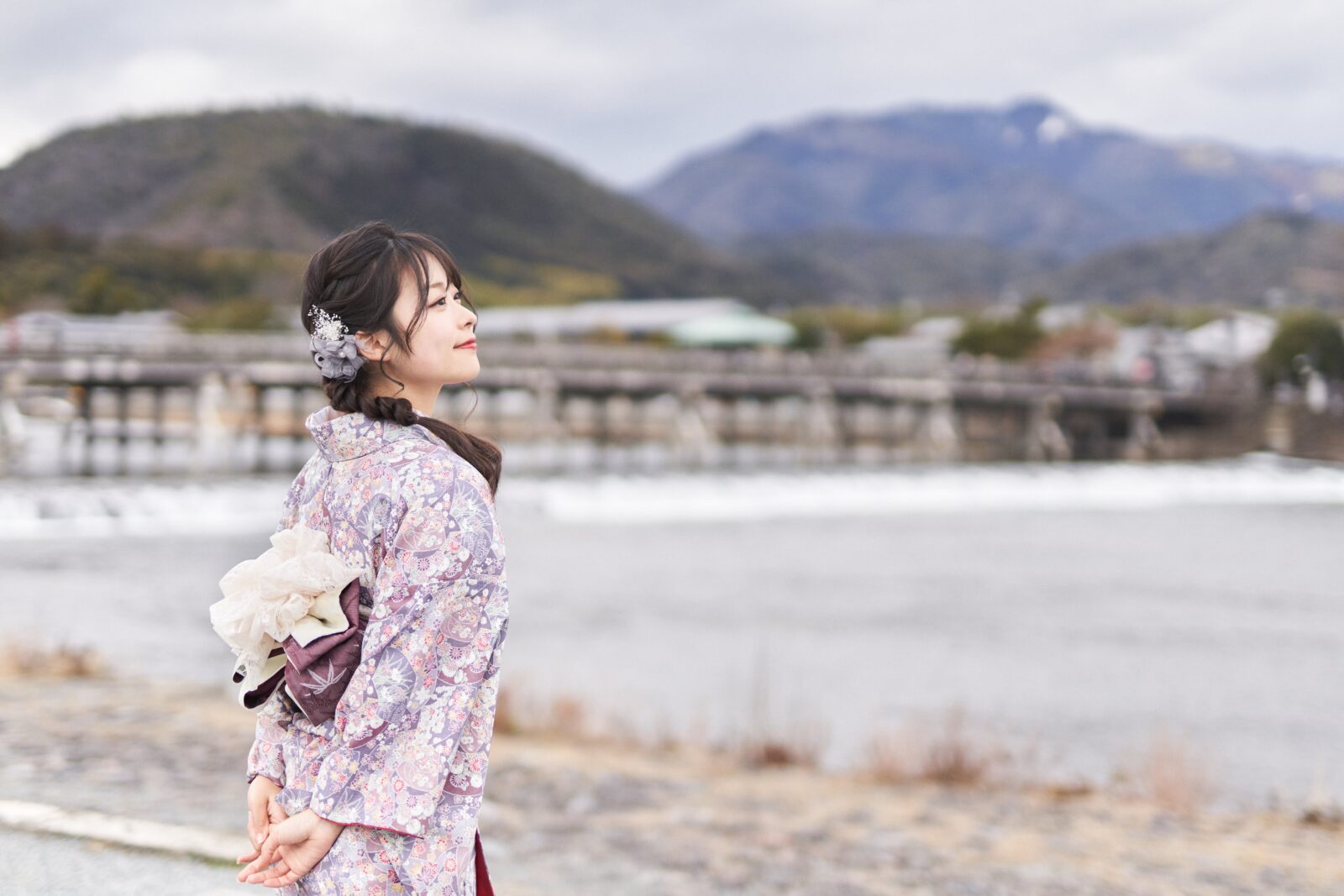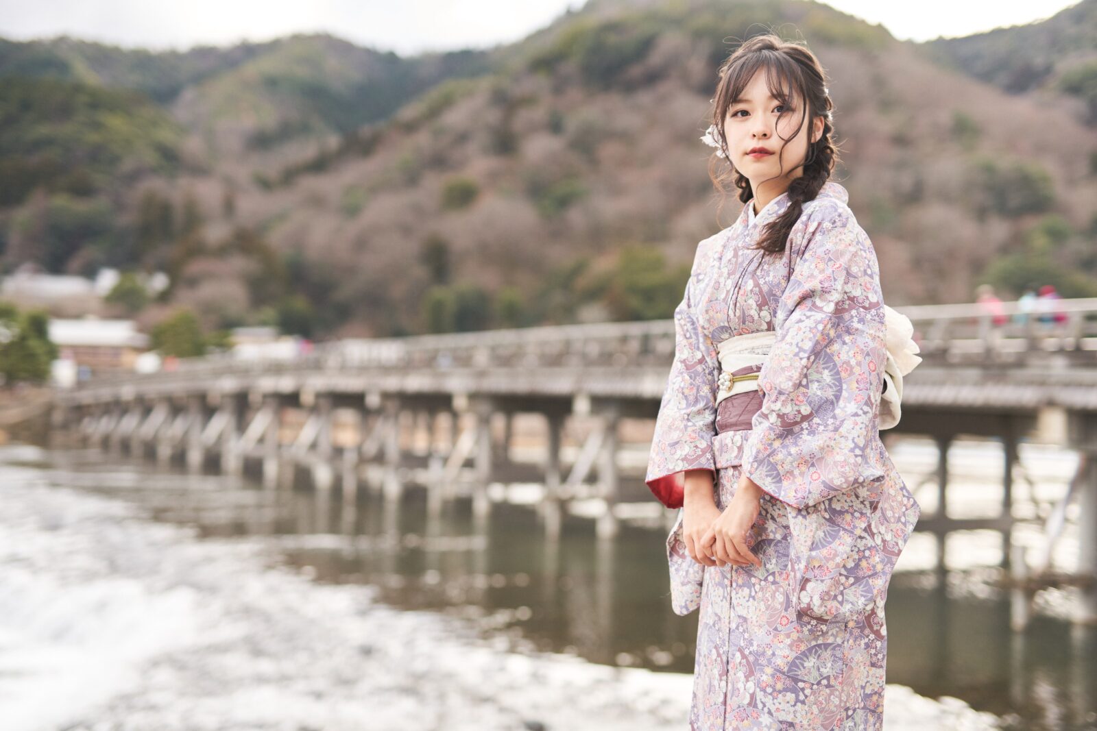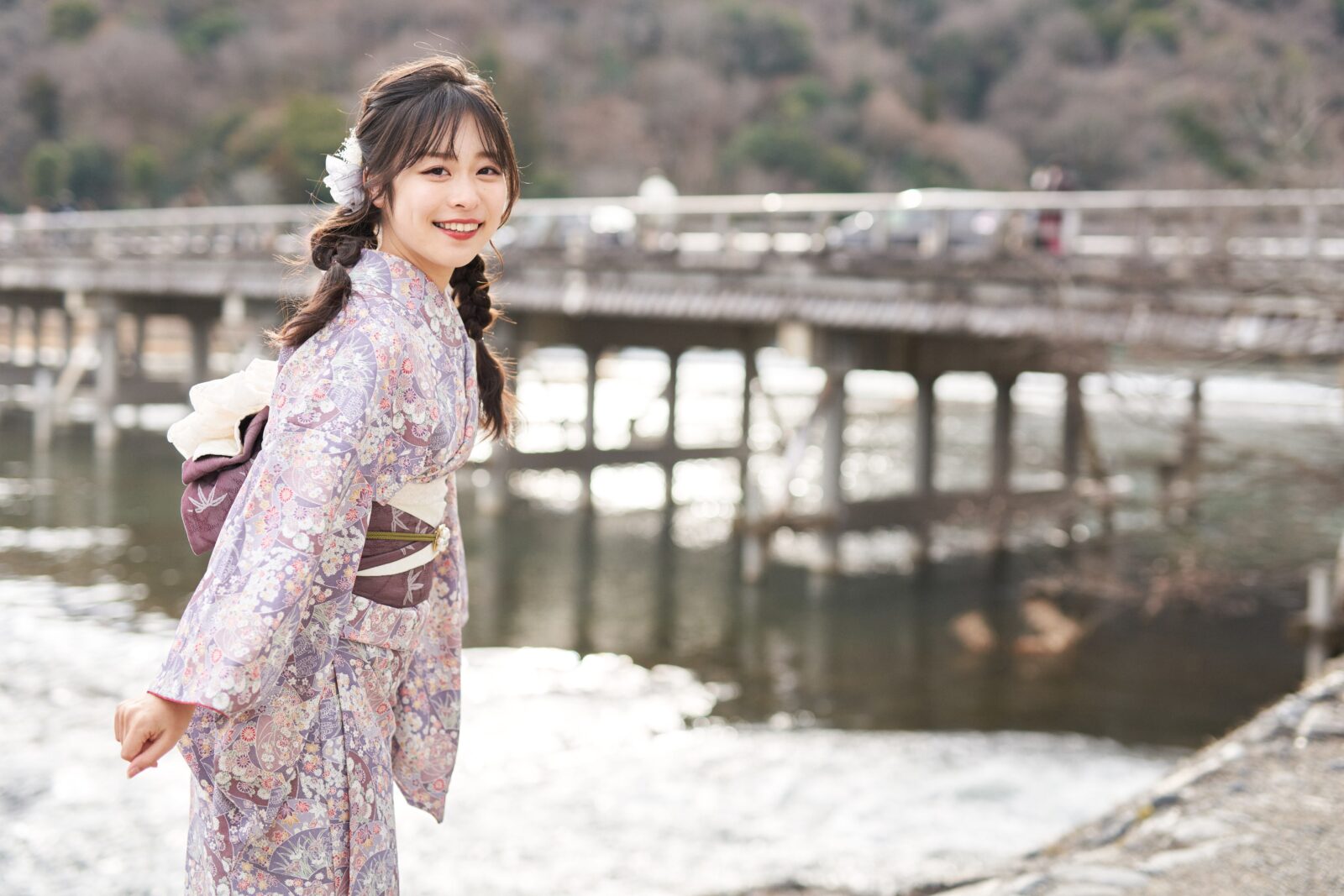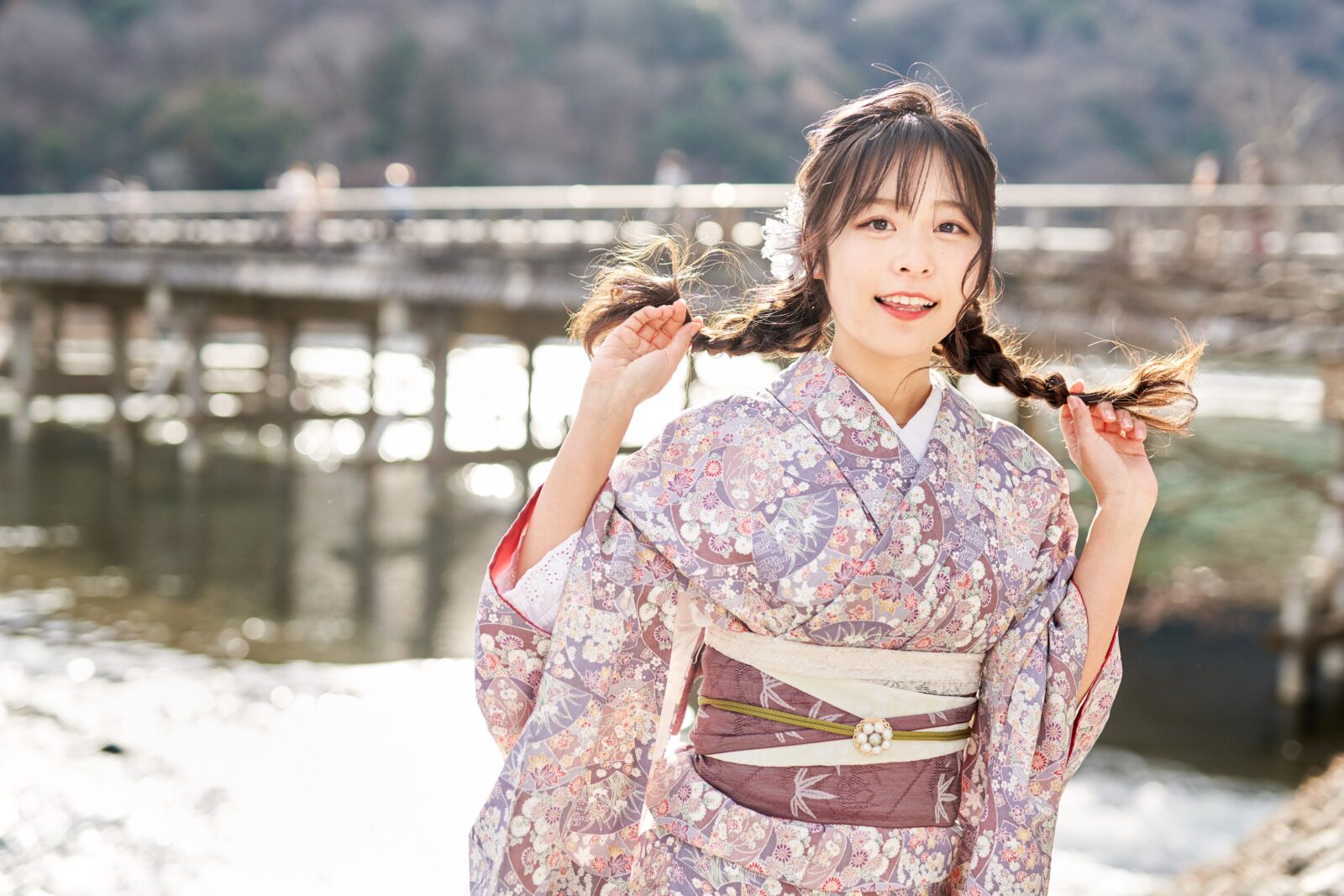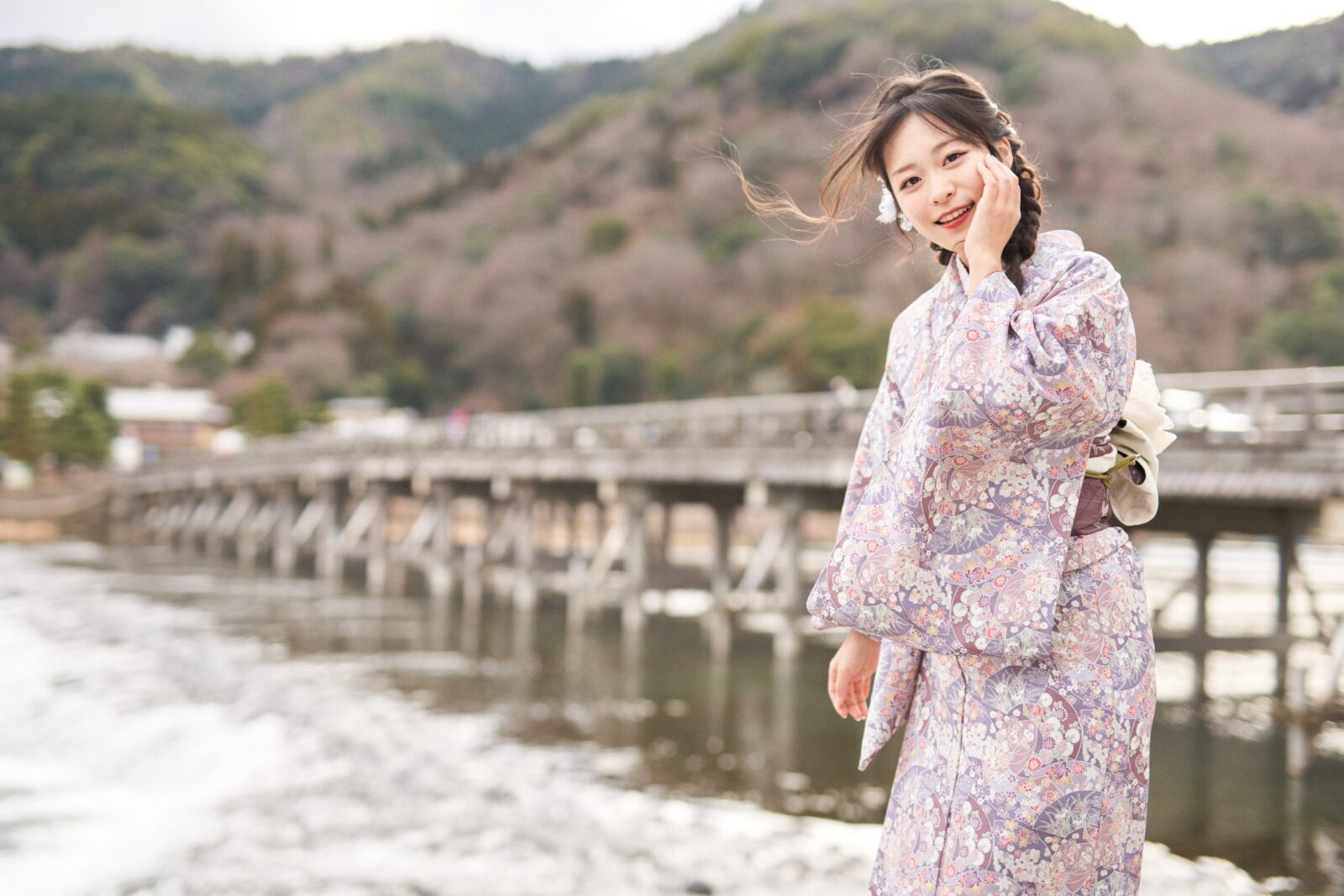 京都嵐山での着物撮影。