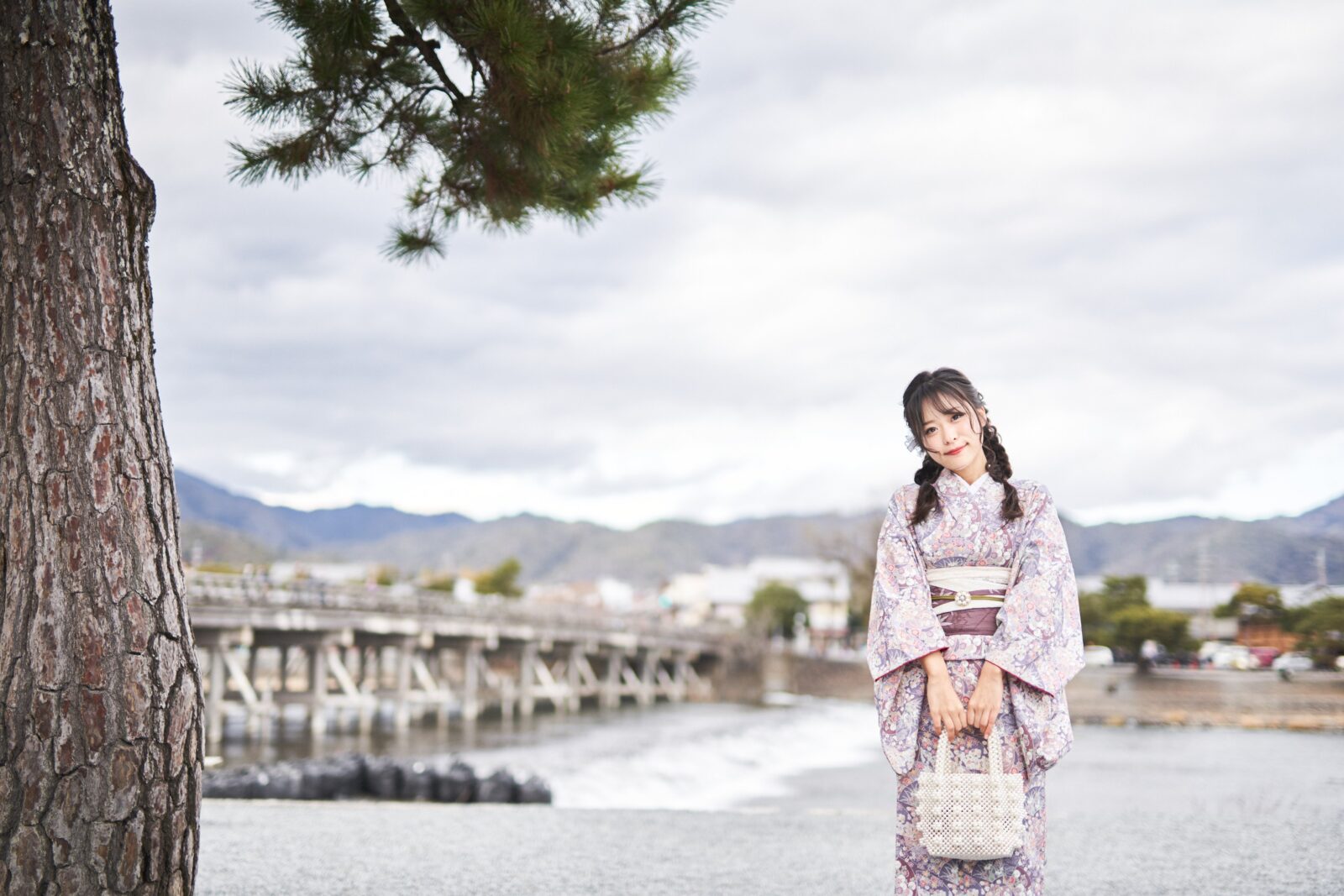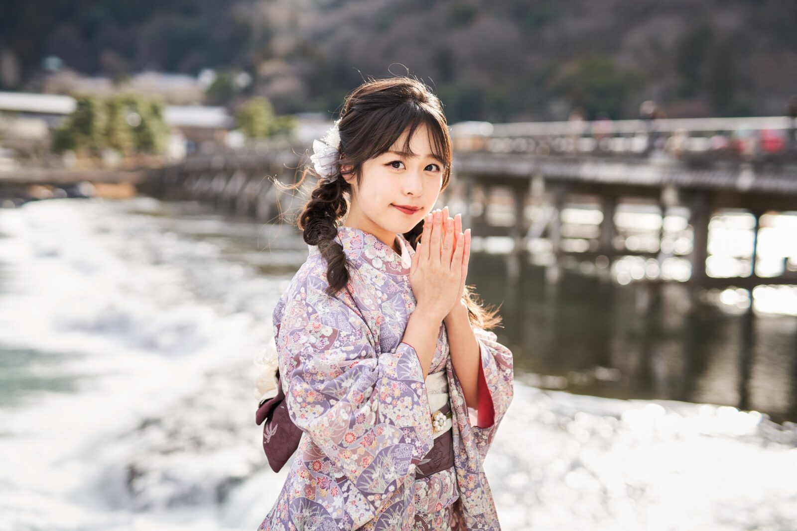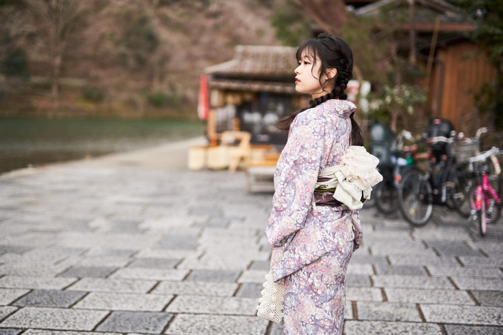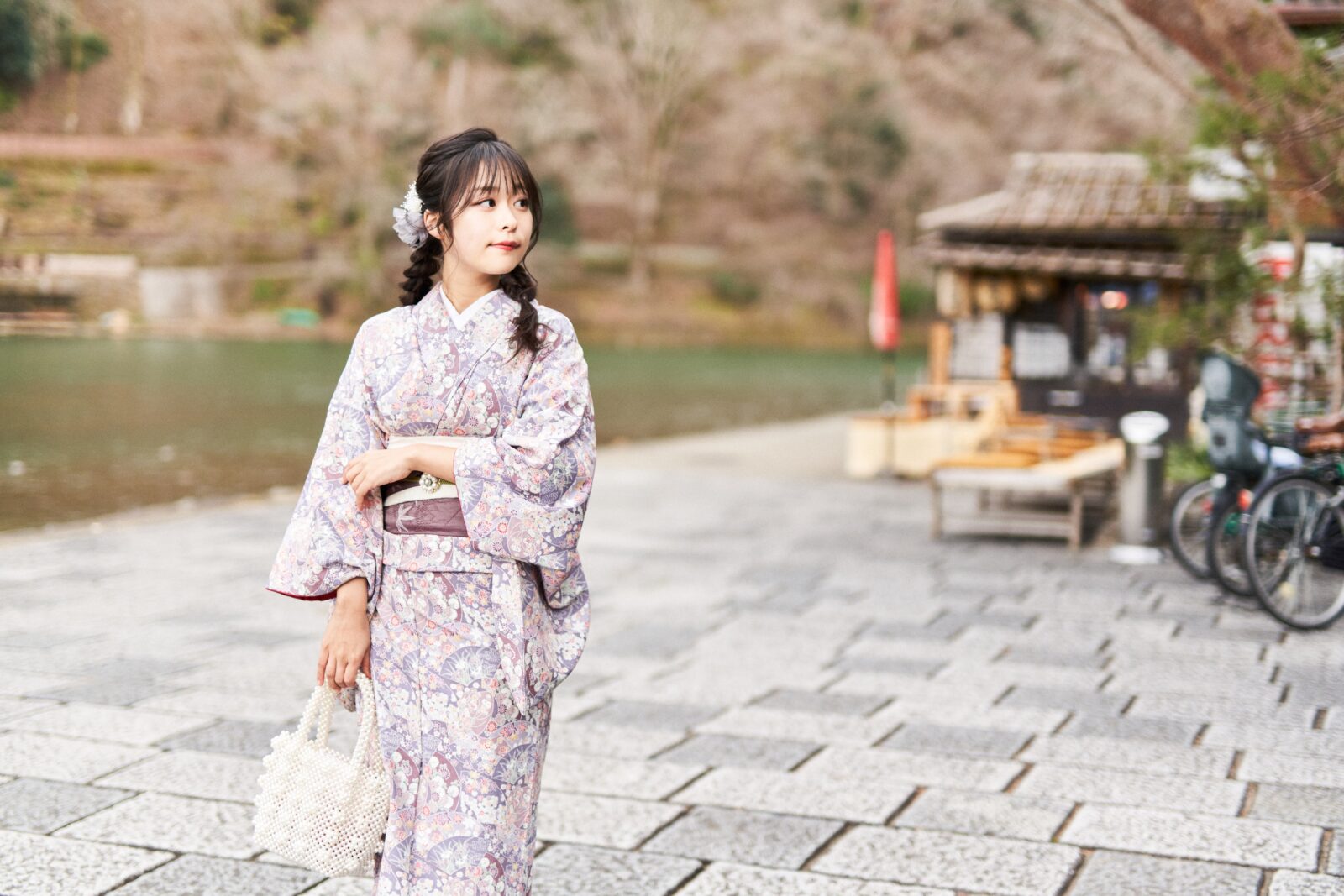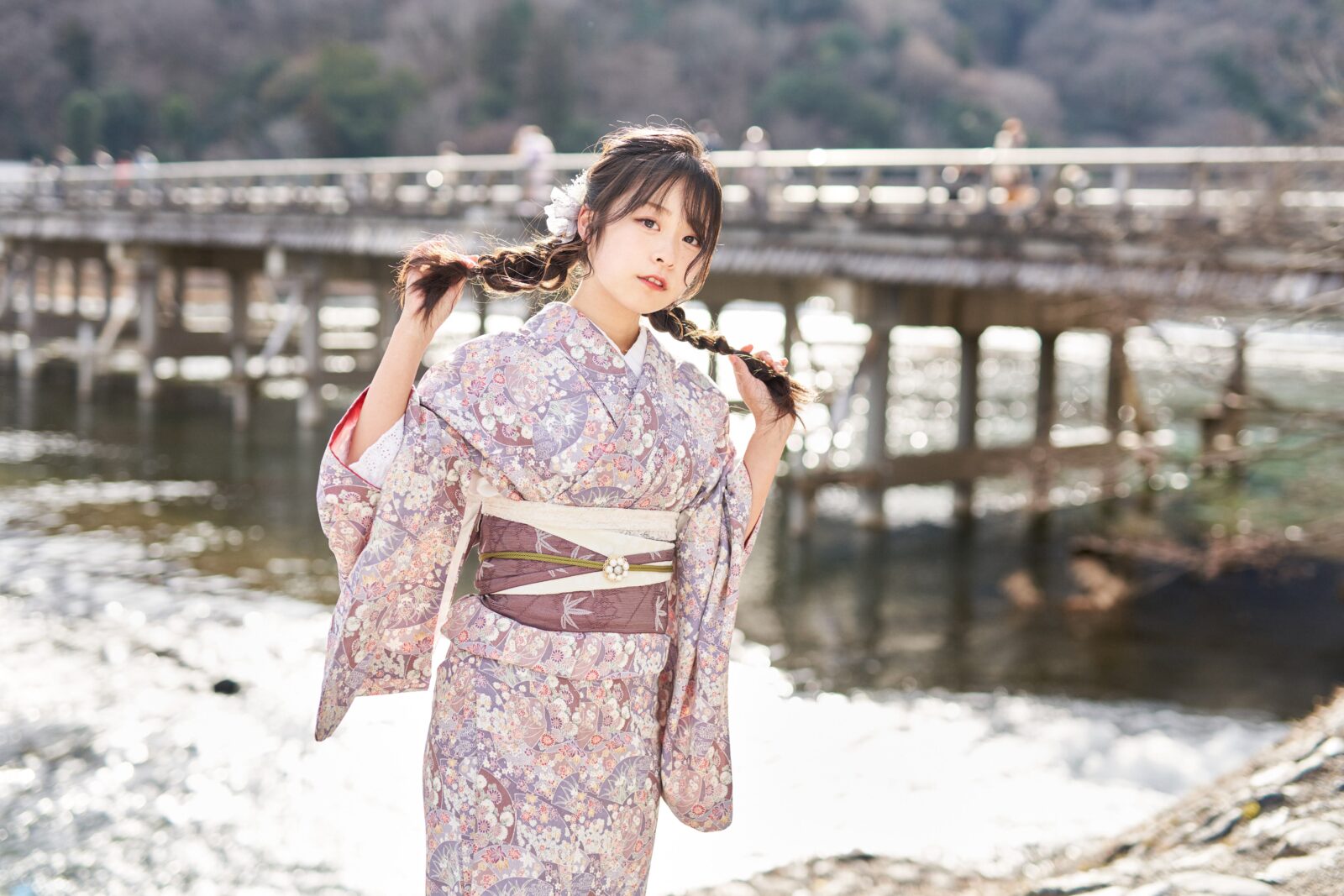 京都嵐山での着物撮影。