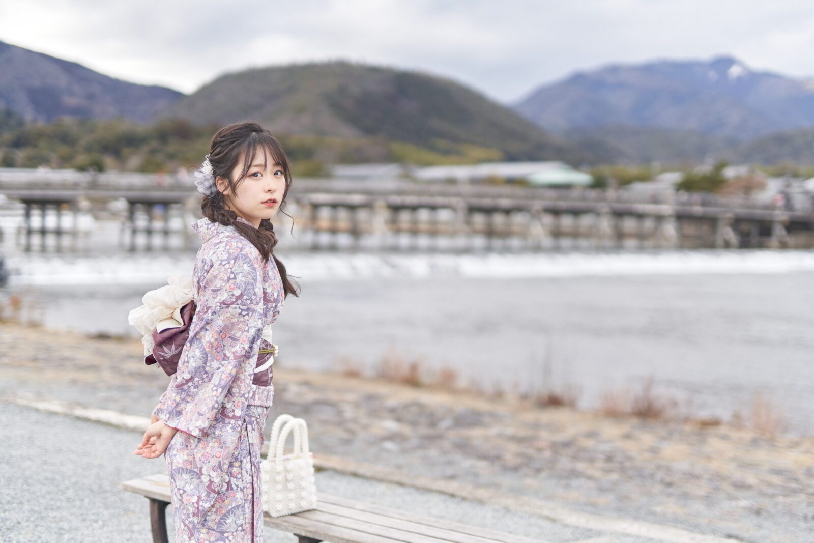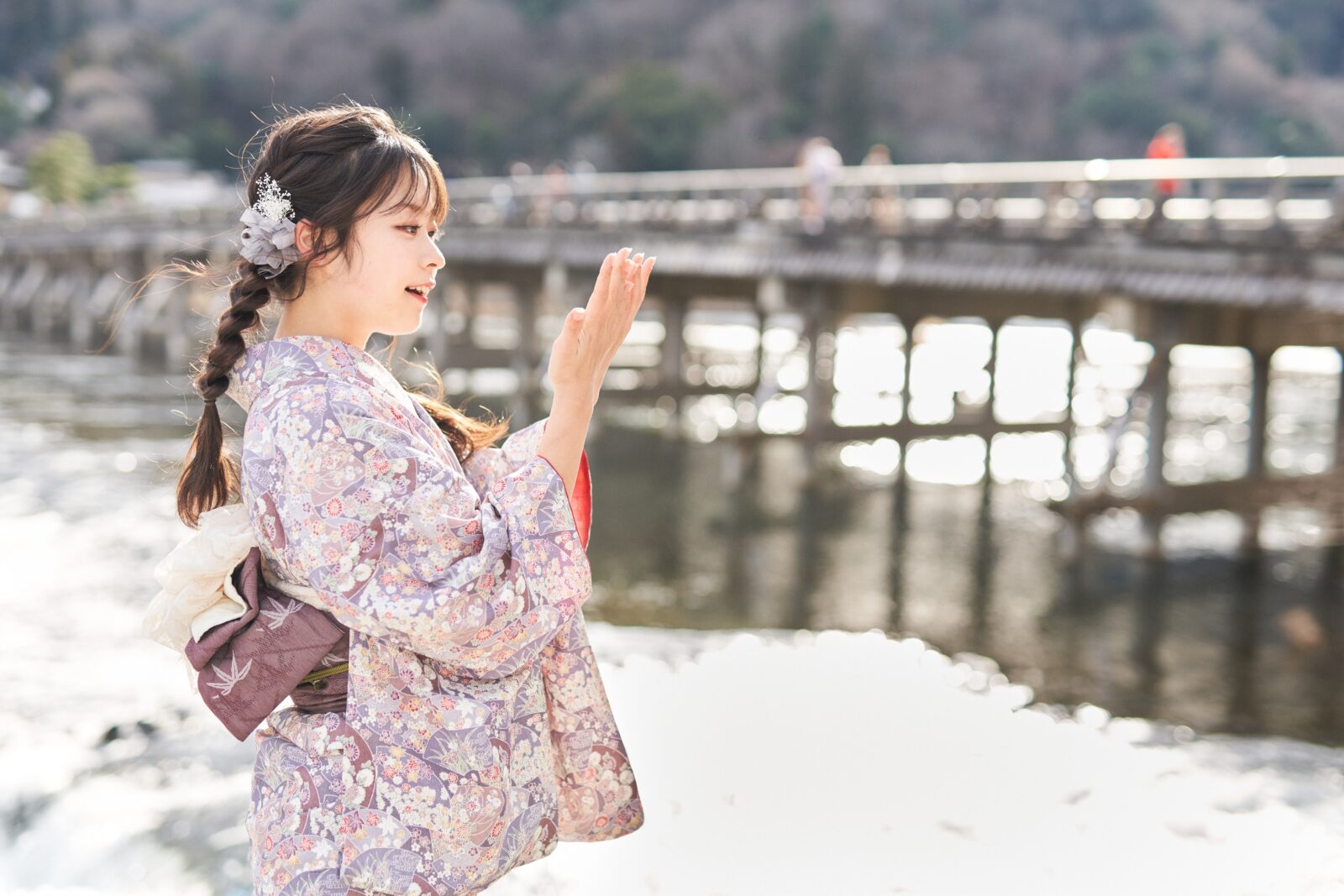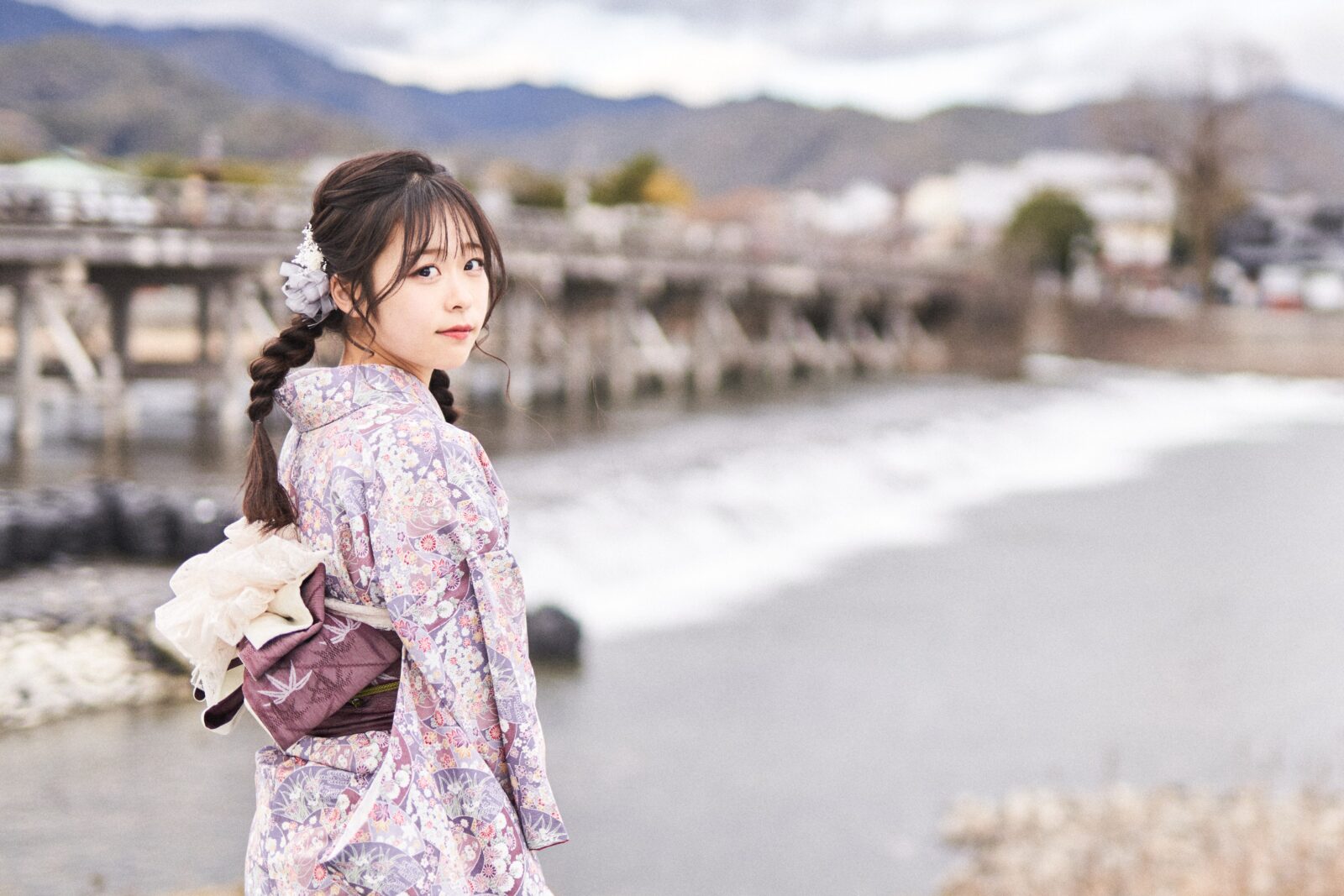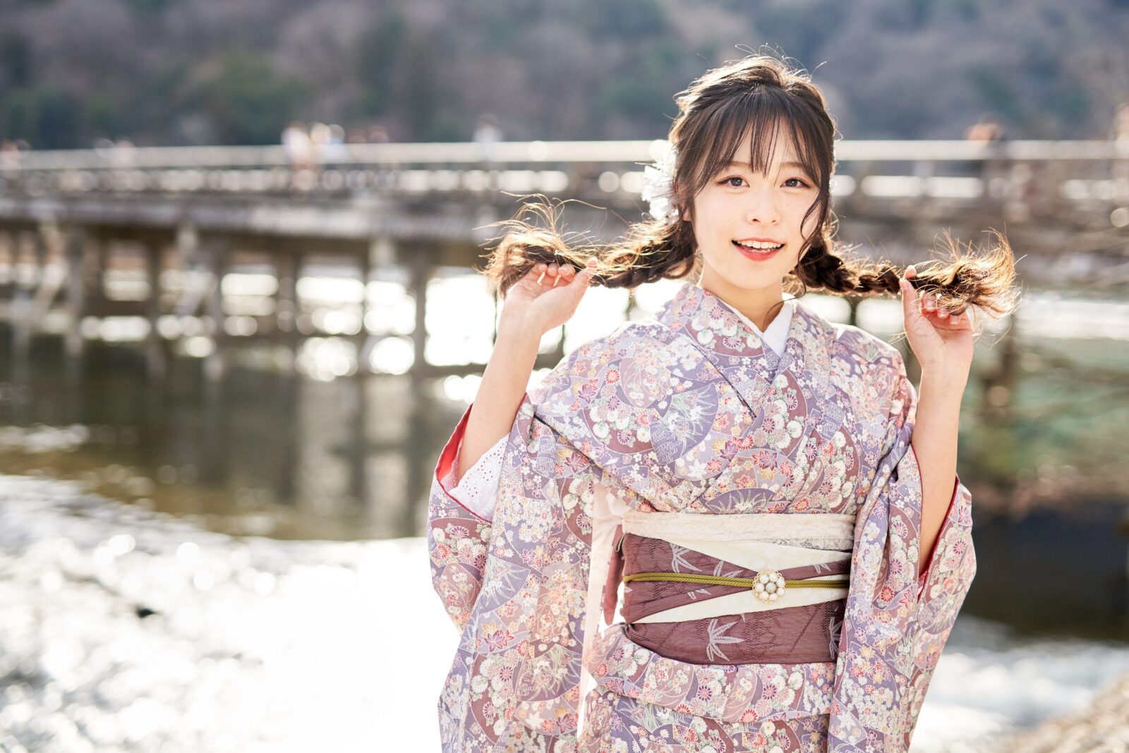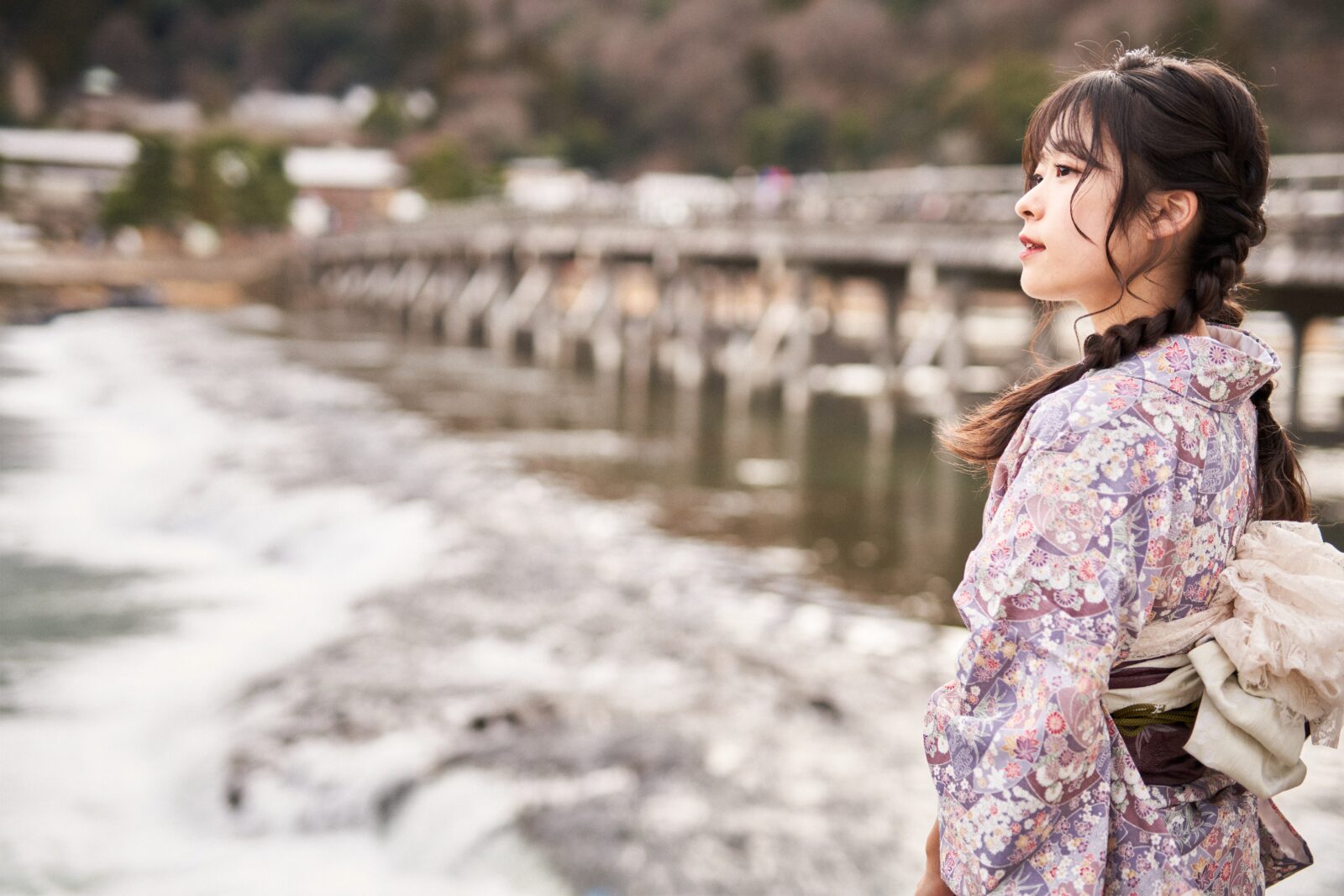 京都嵐山での着物撮影。