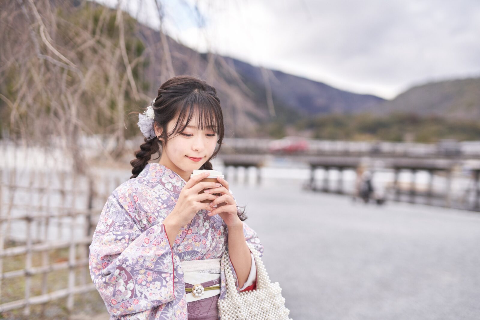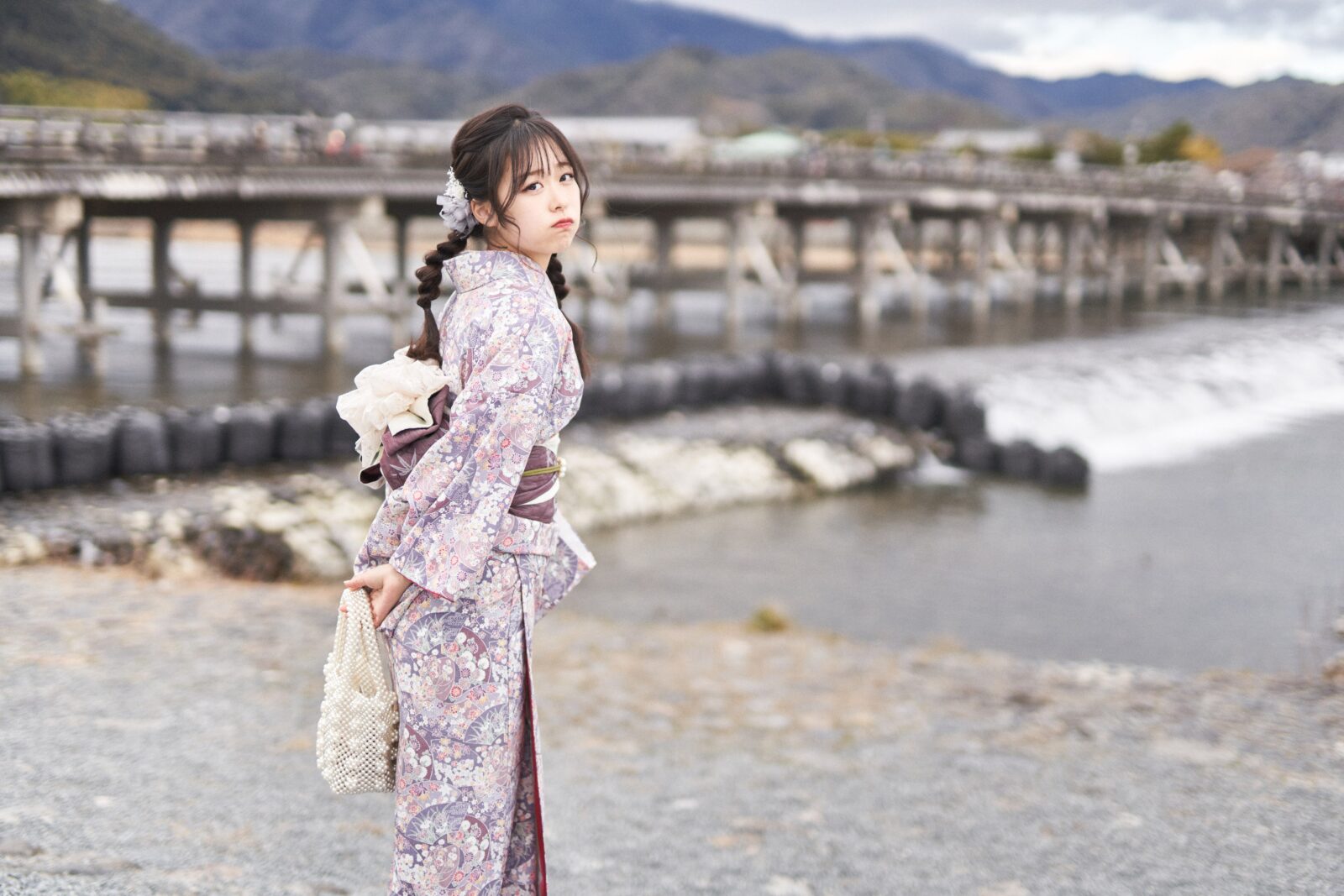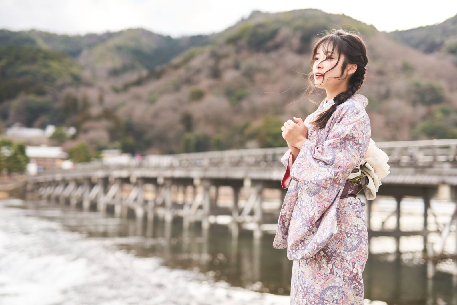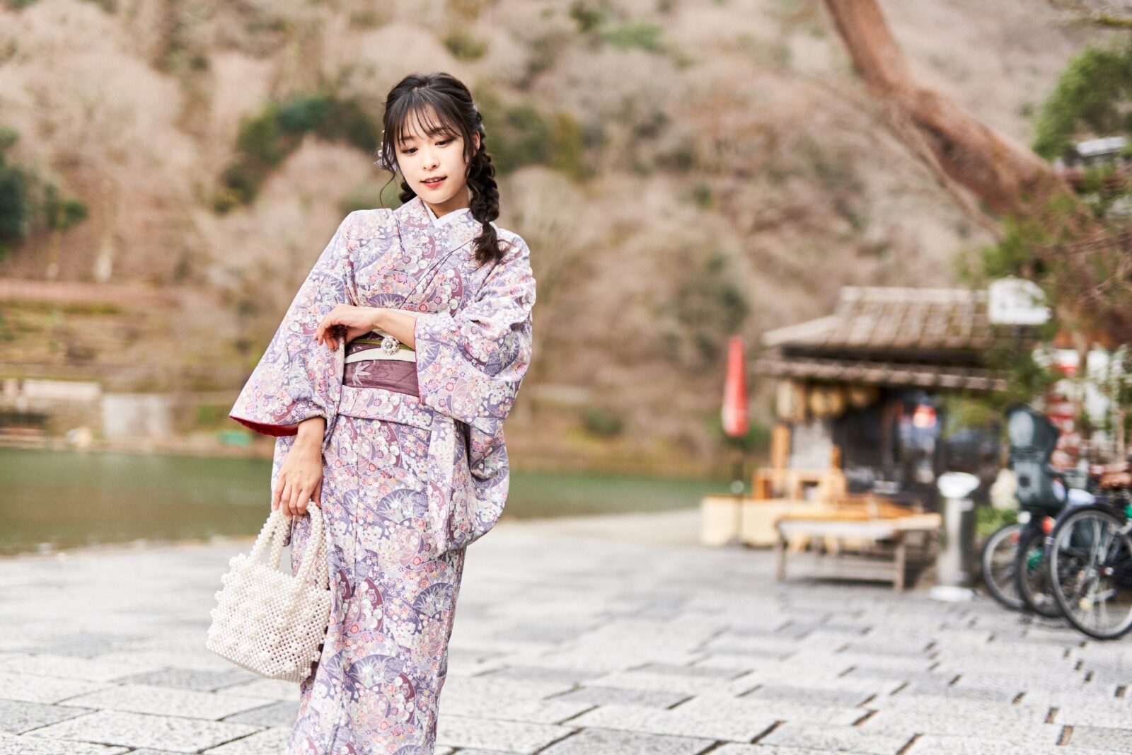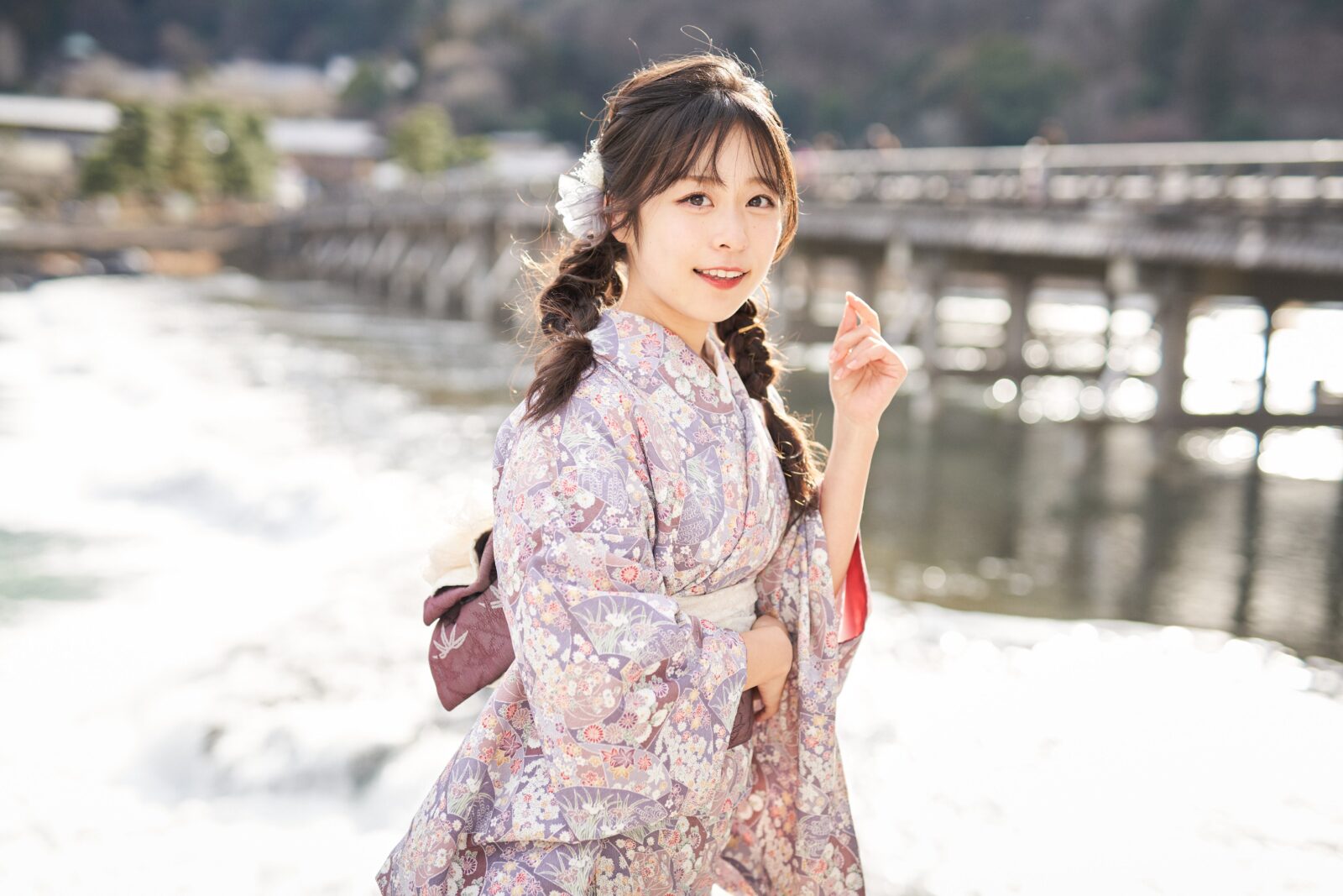 京都嵐山での着物撮影。