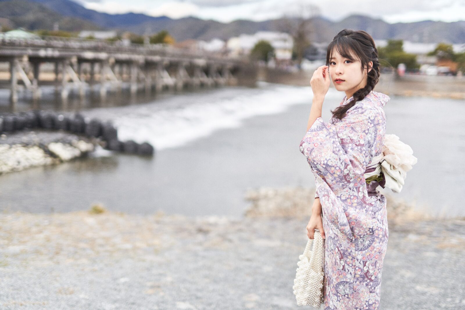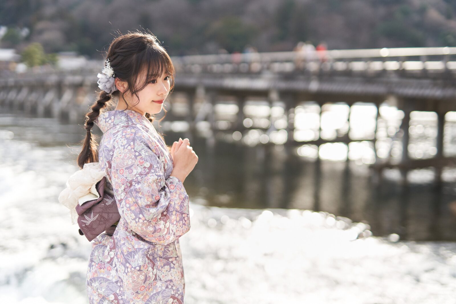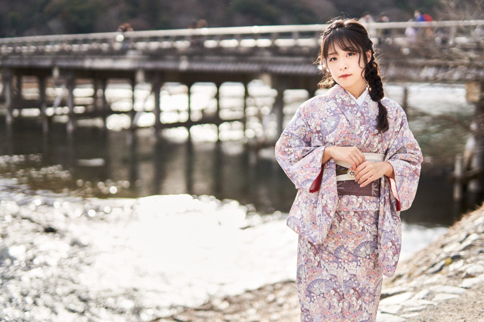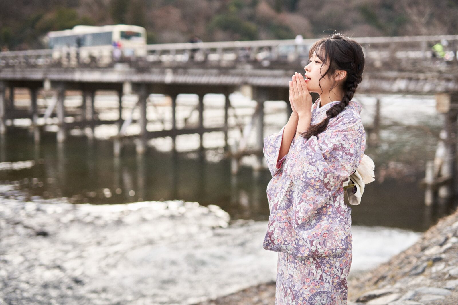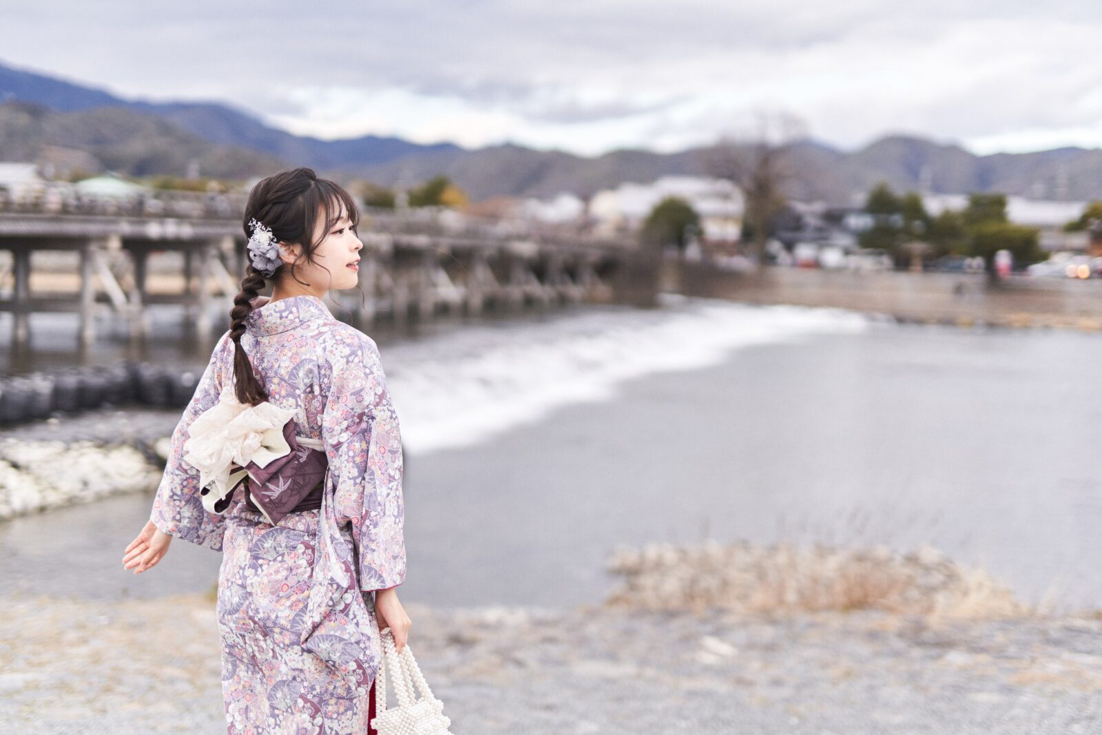 京都嵐山での着物撮影。