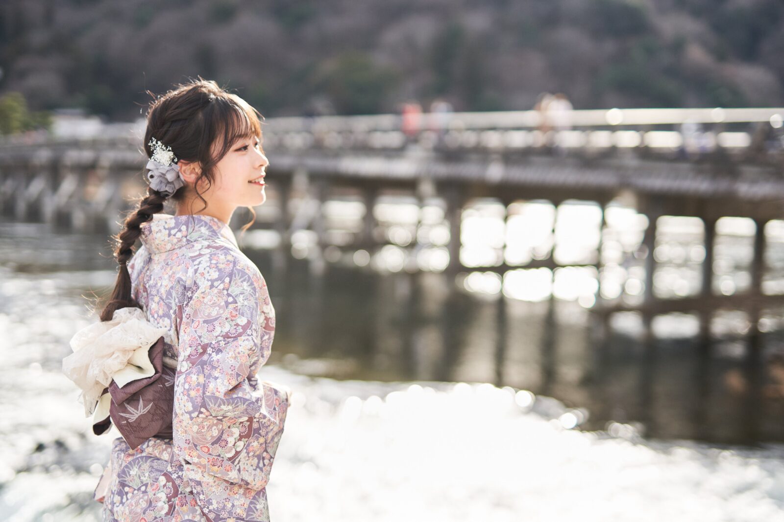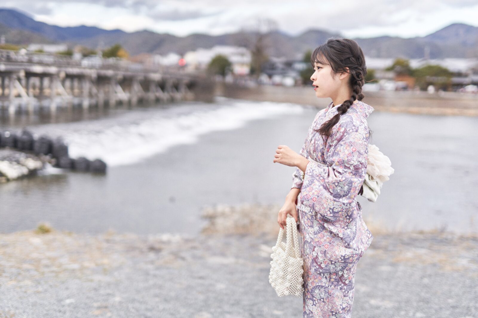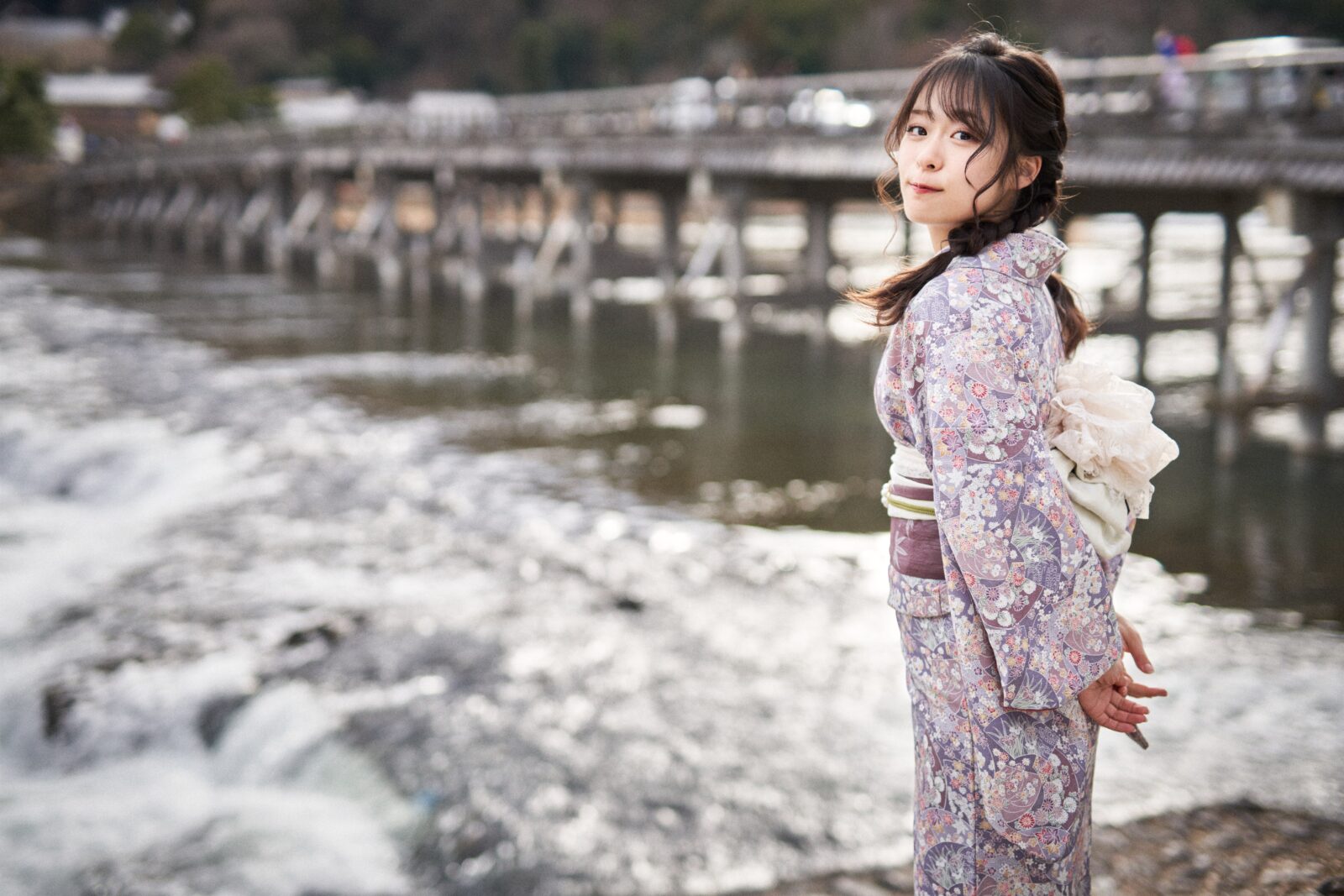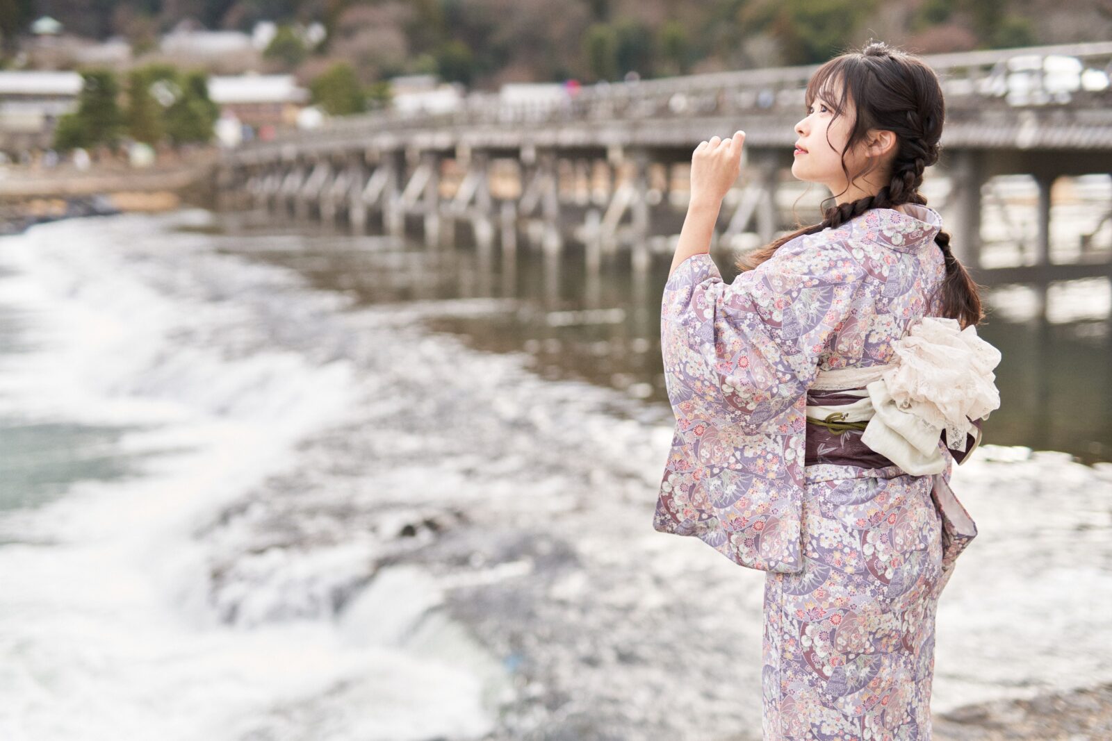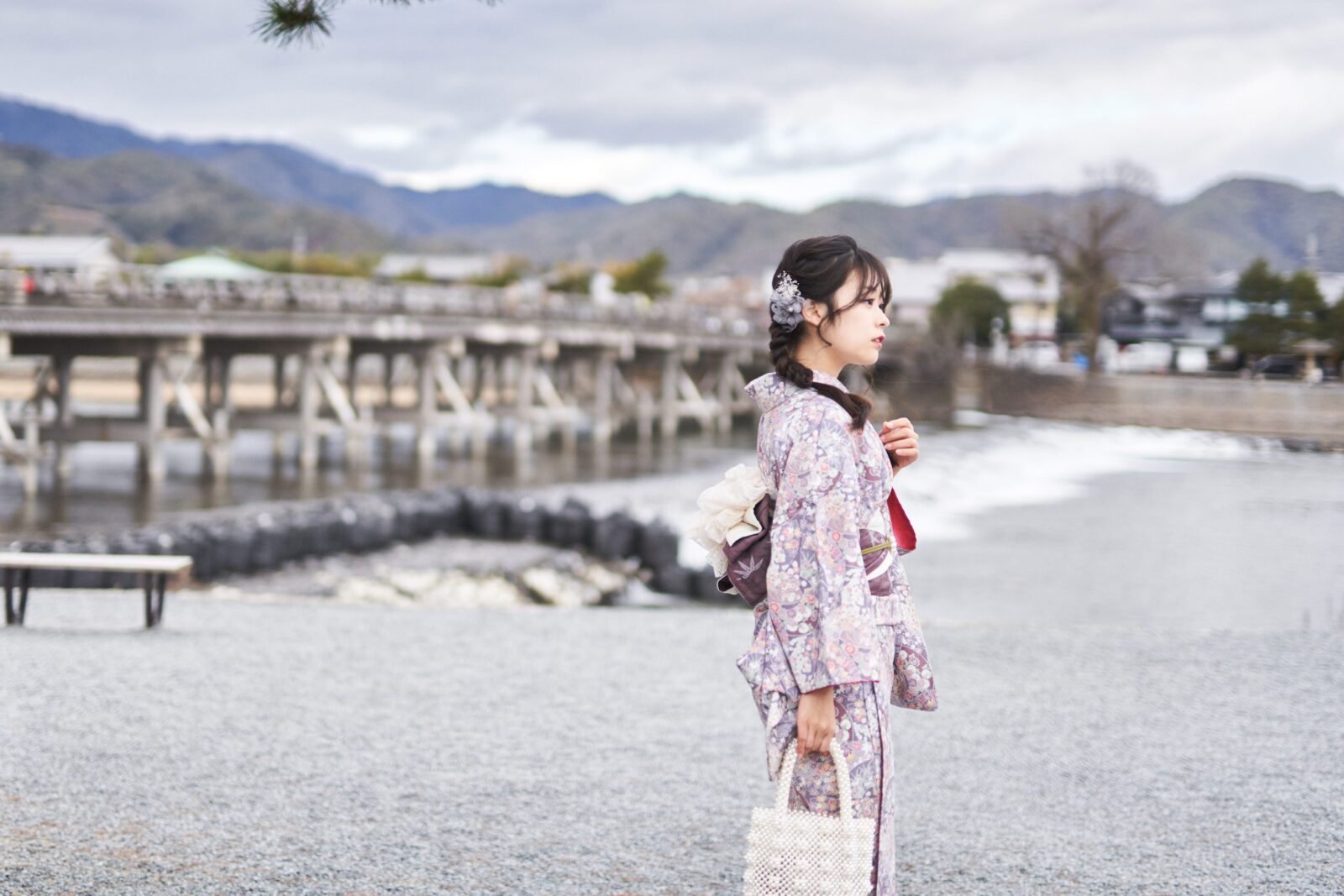京都嵐山での着物撮影。