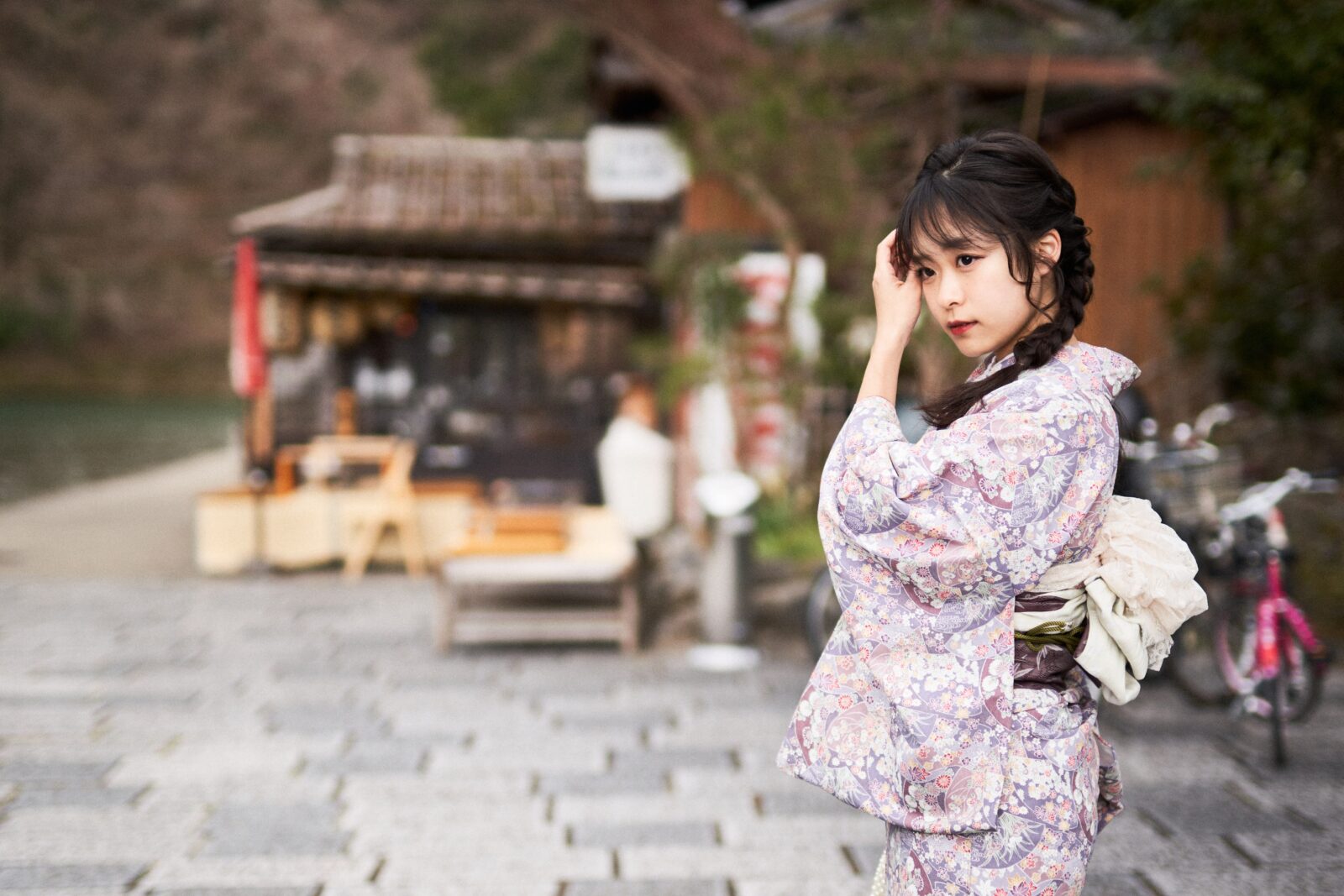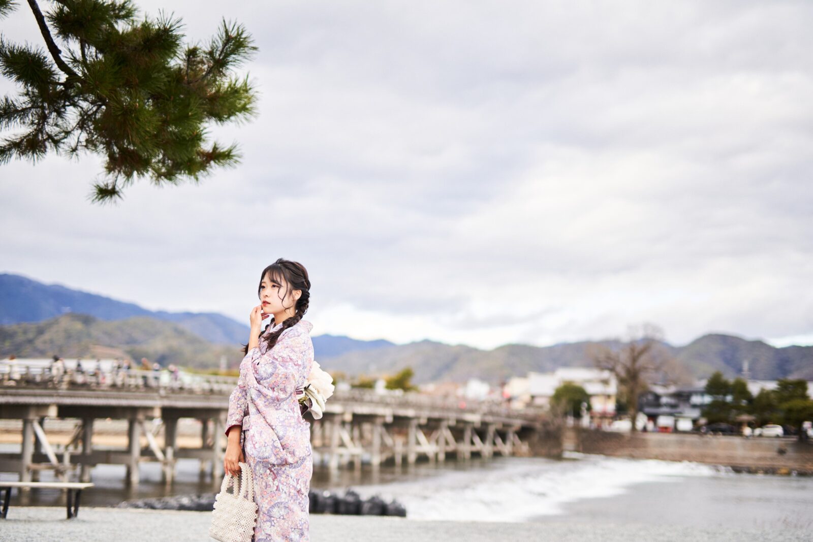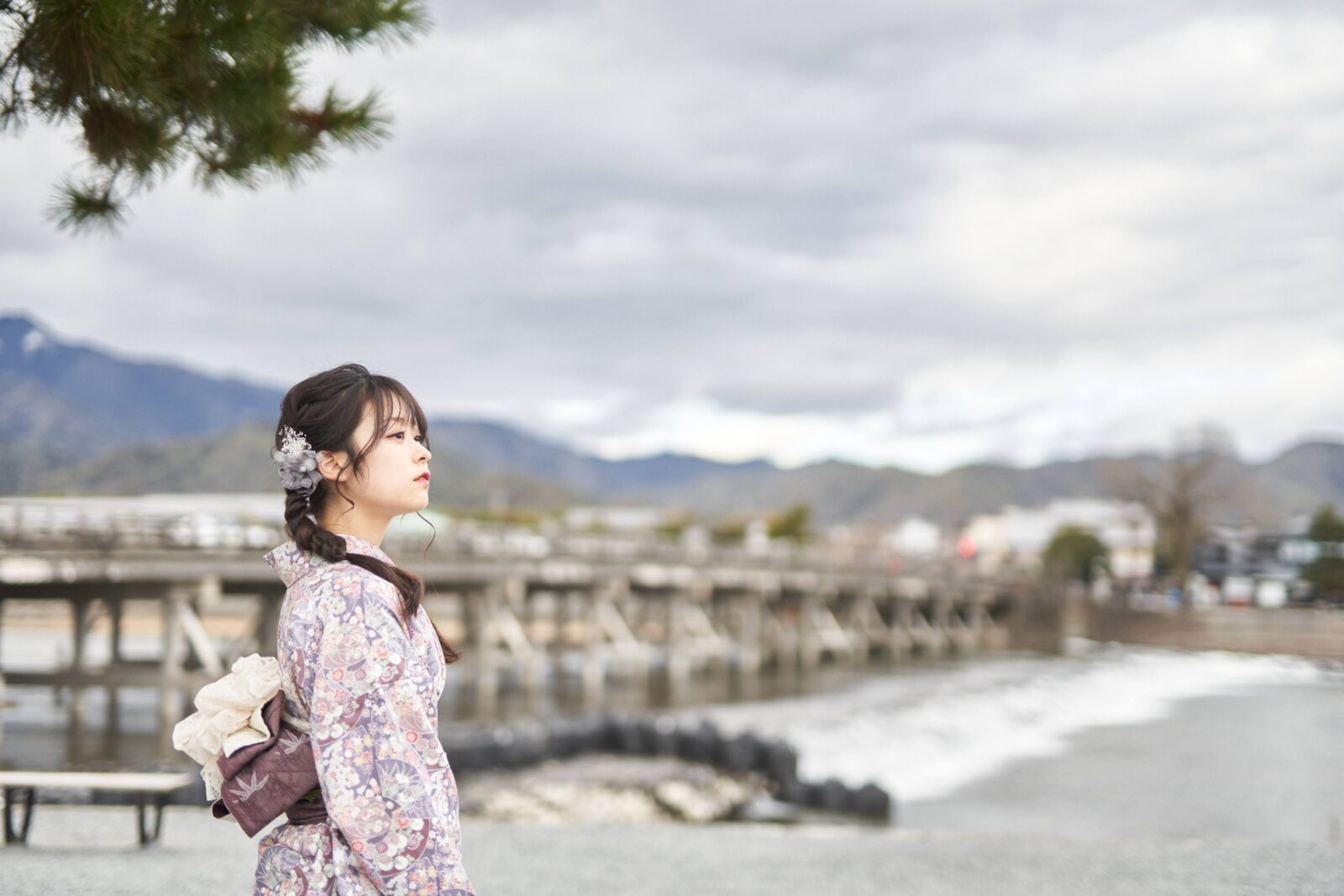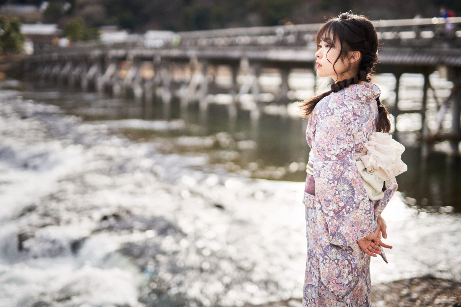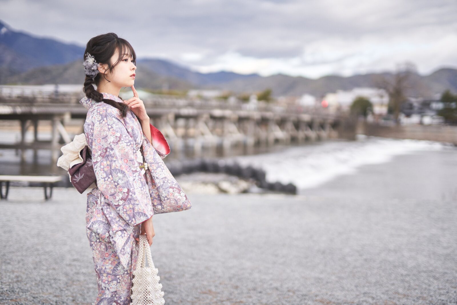 京都嵐山での着物撮影。