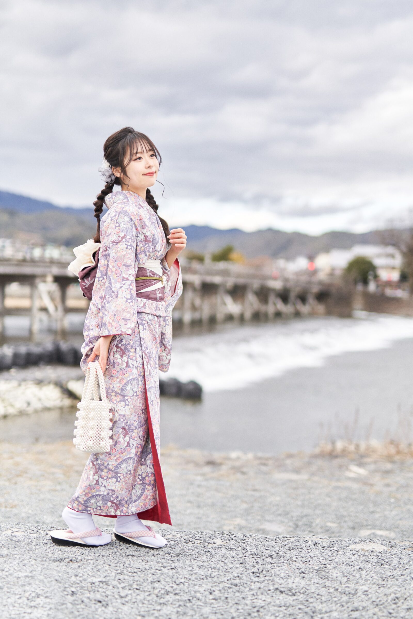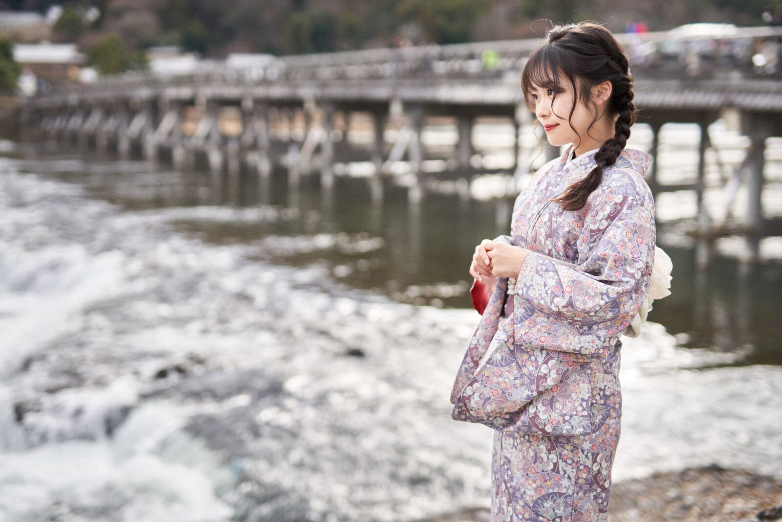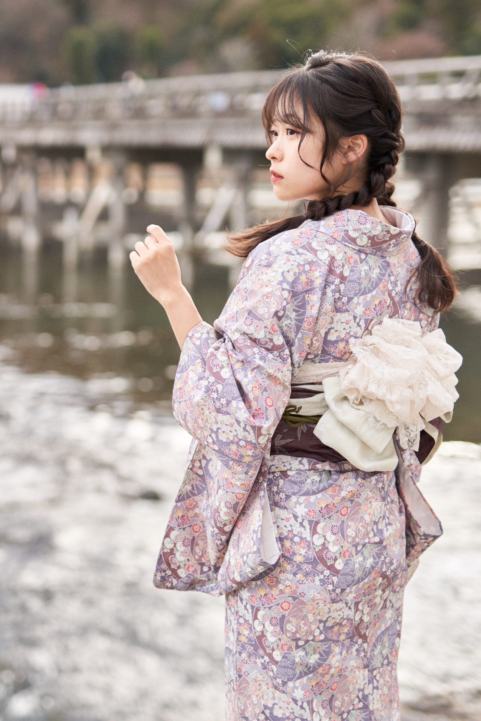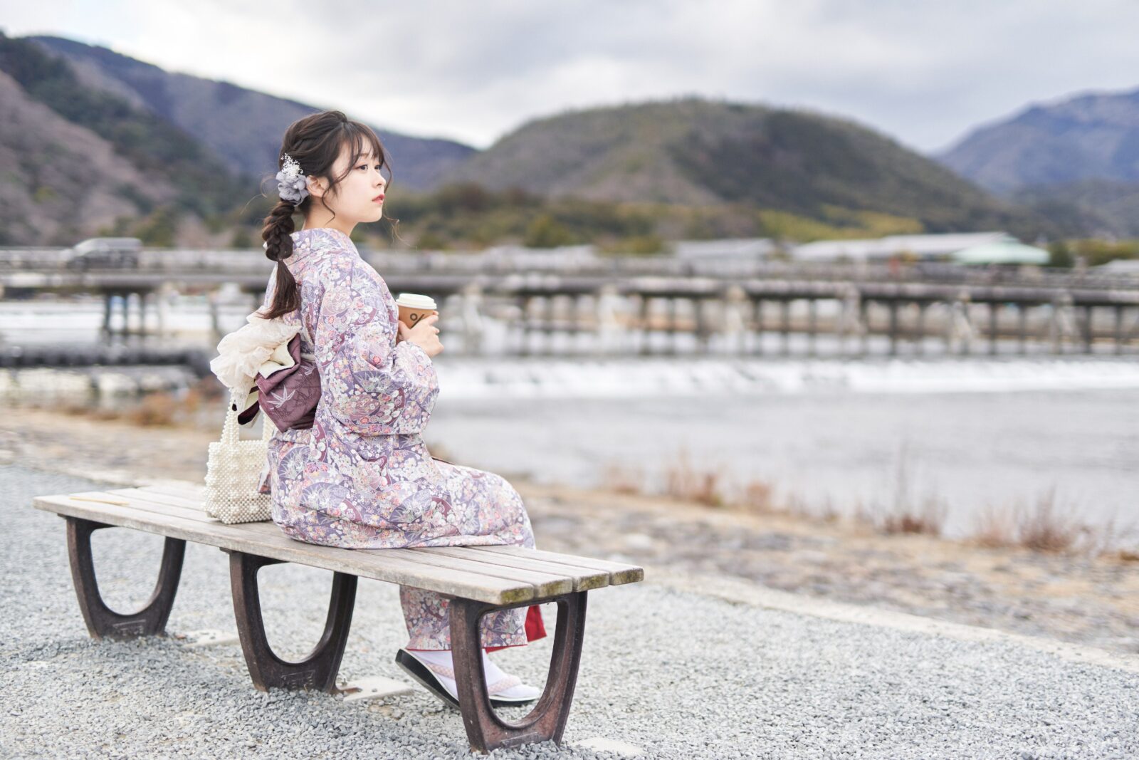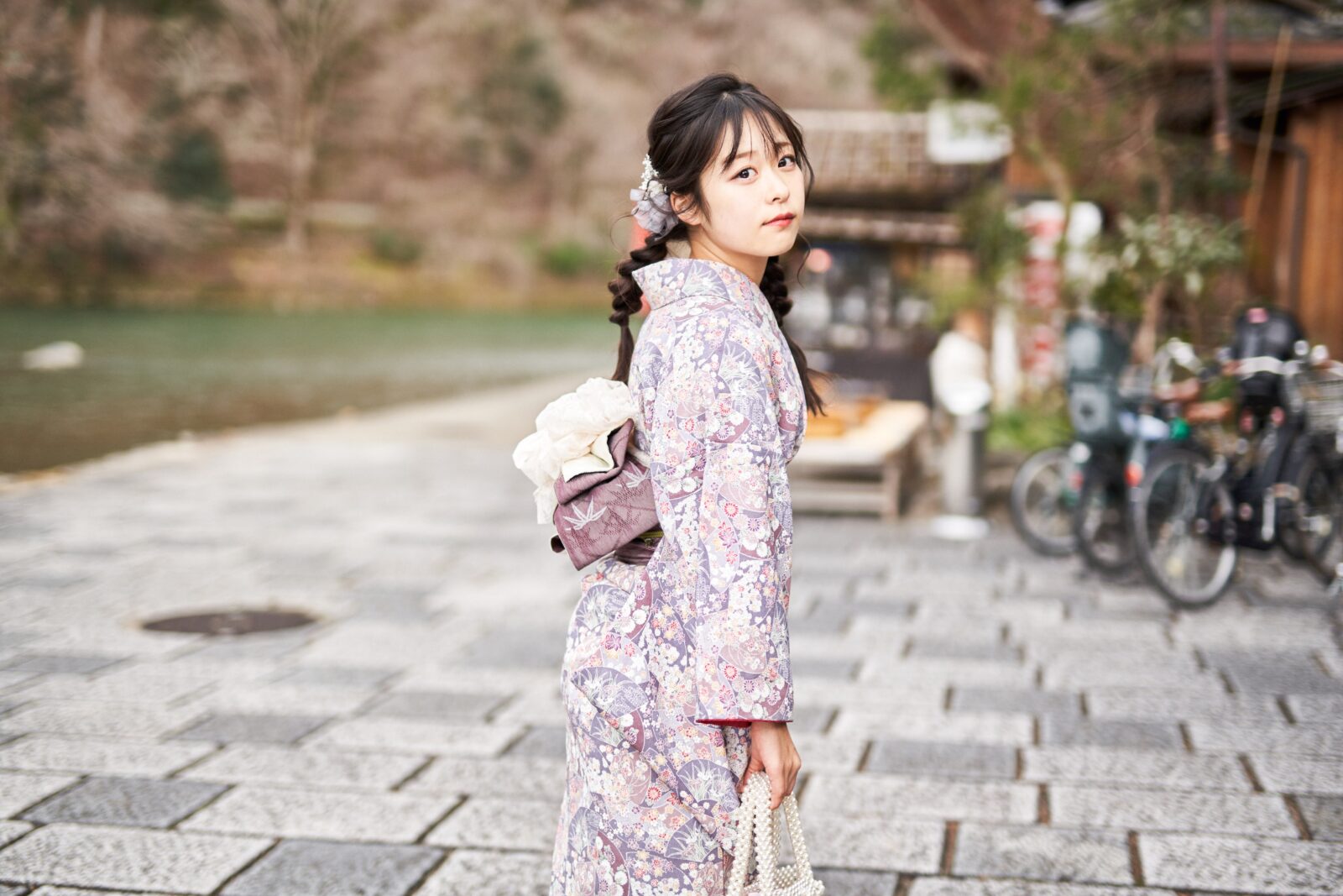 京都嵐山での着物撮影。