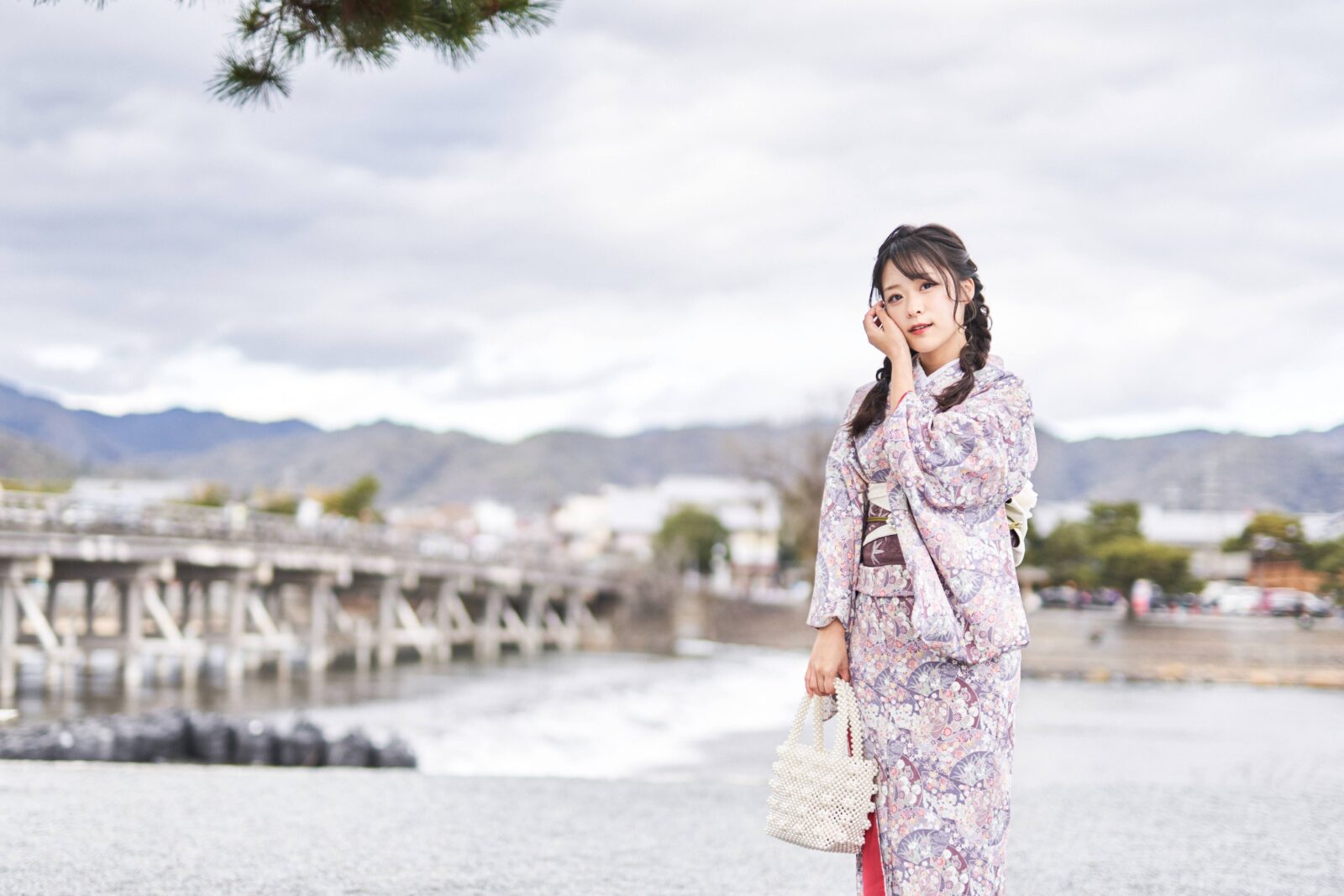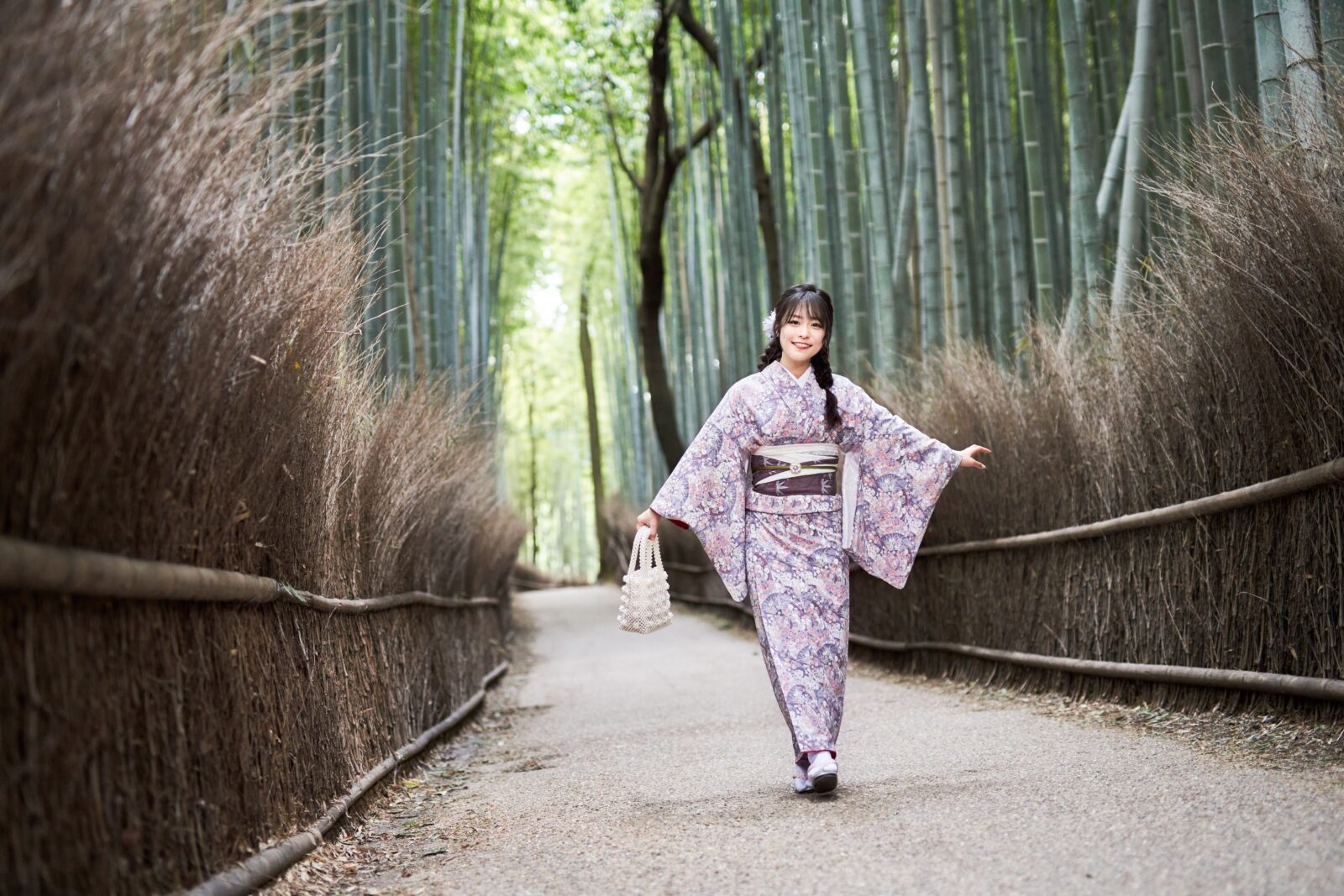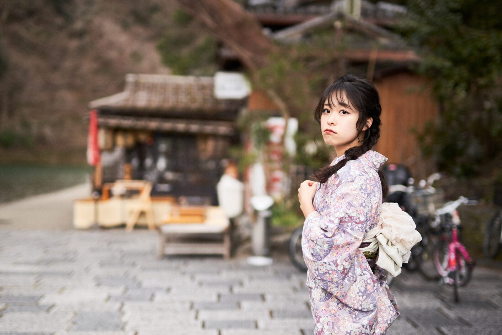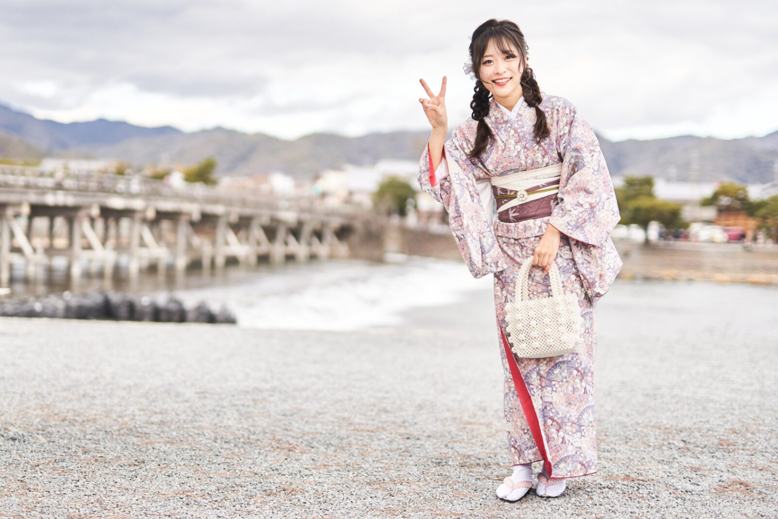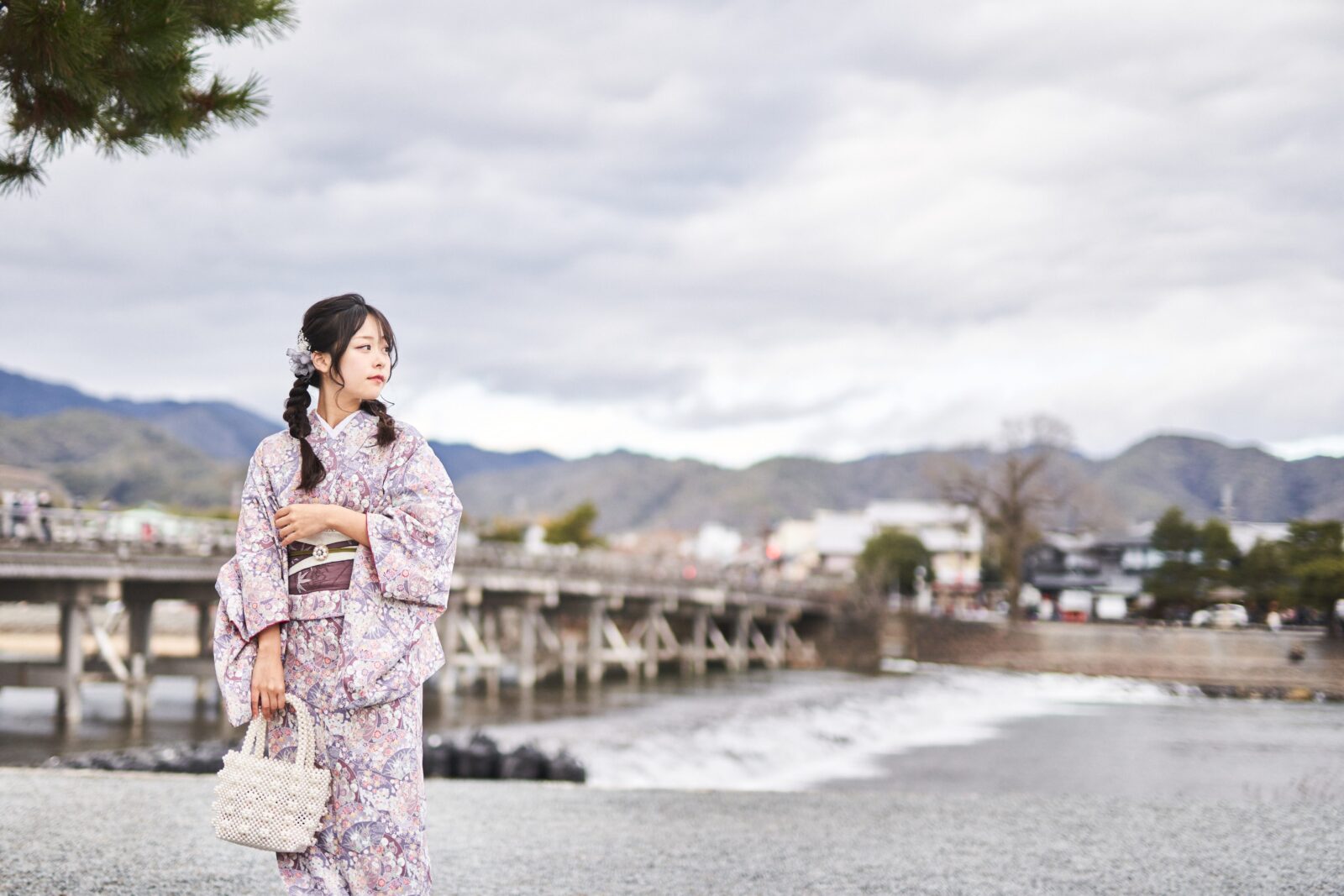 京都嵐山での着物撮影。