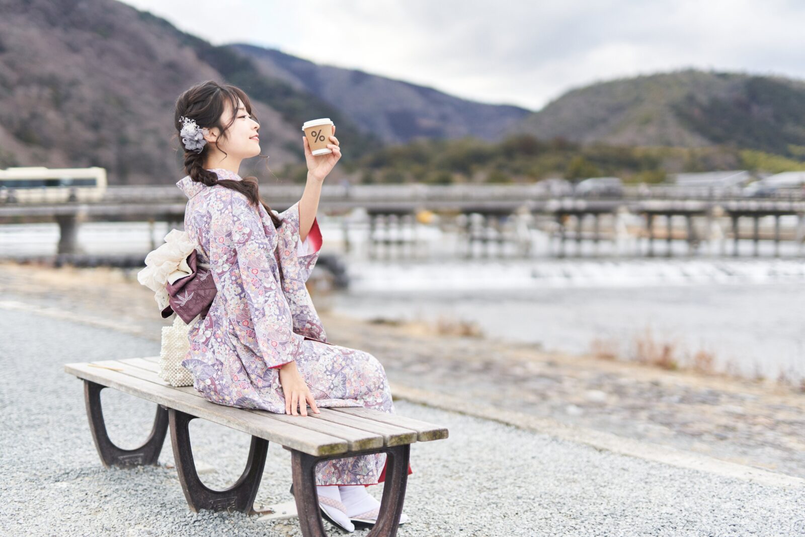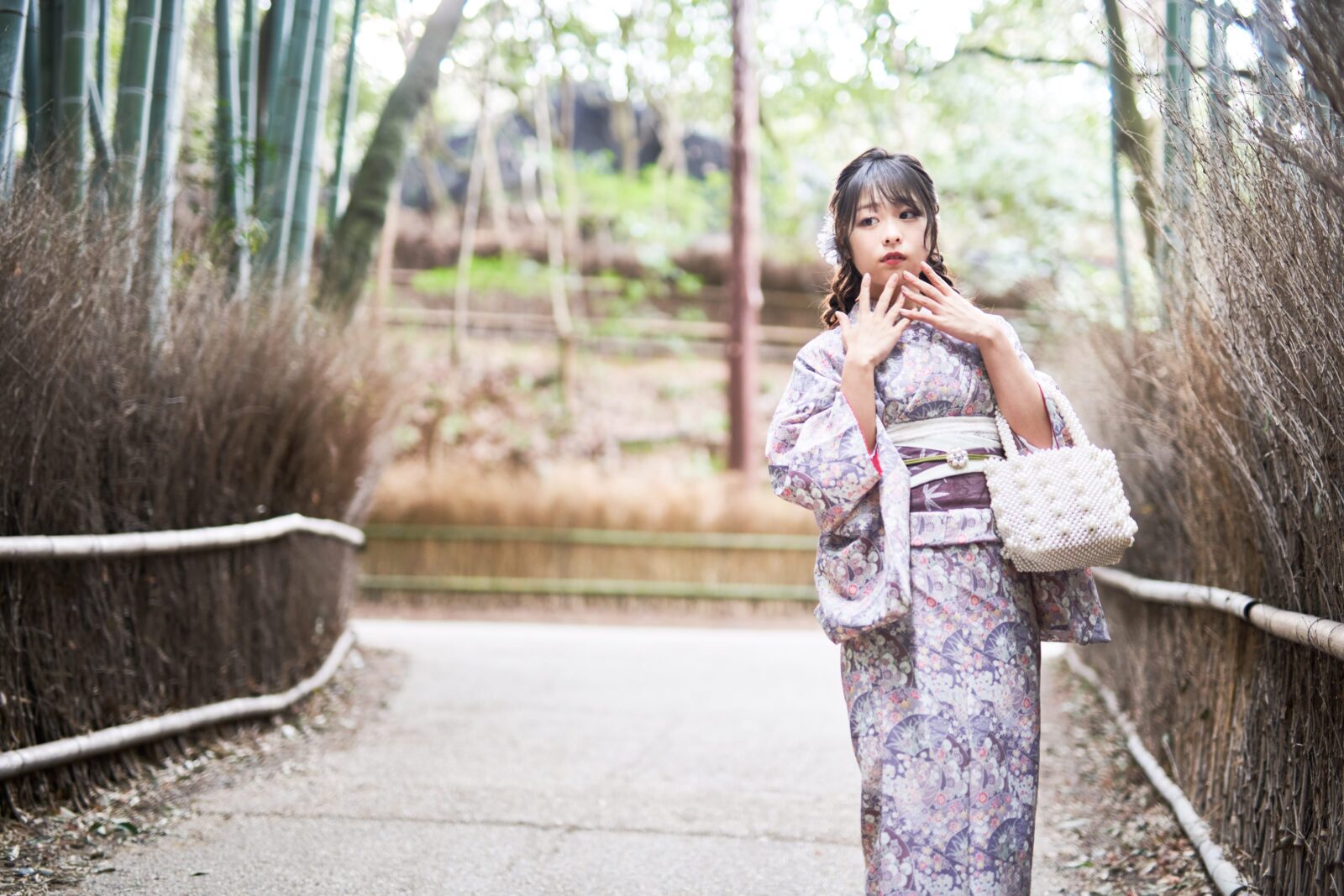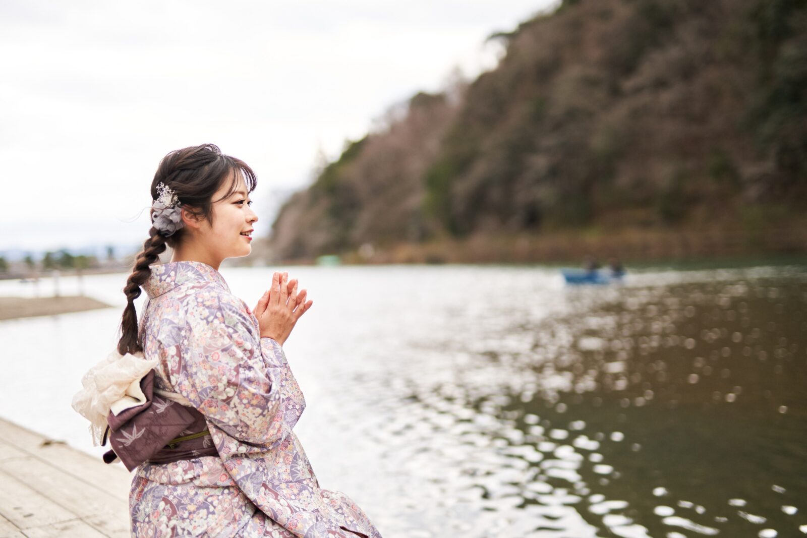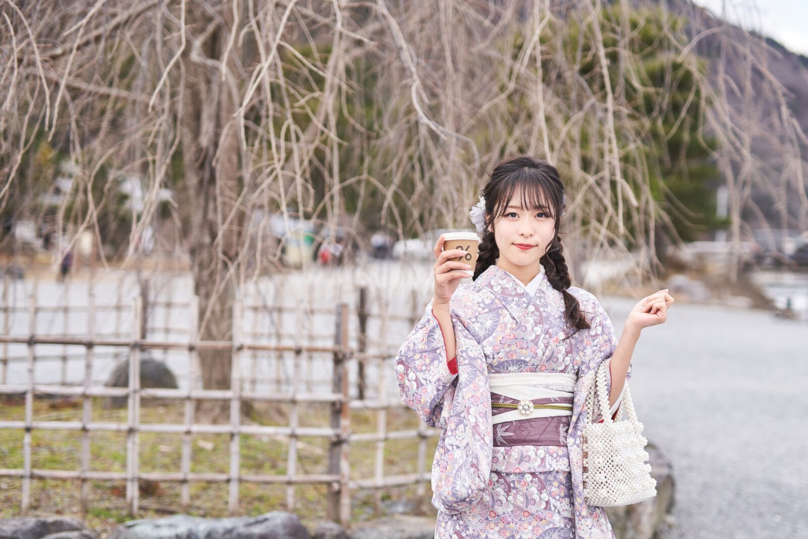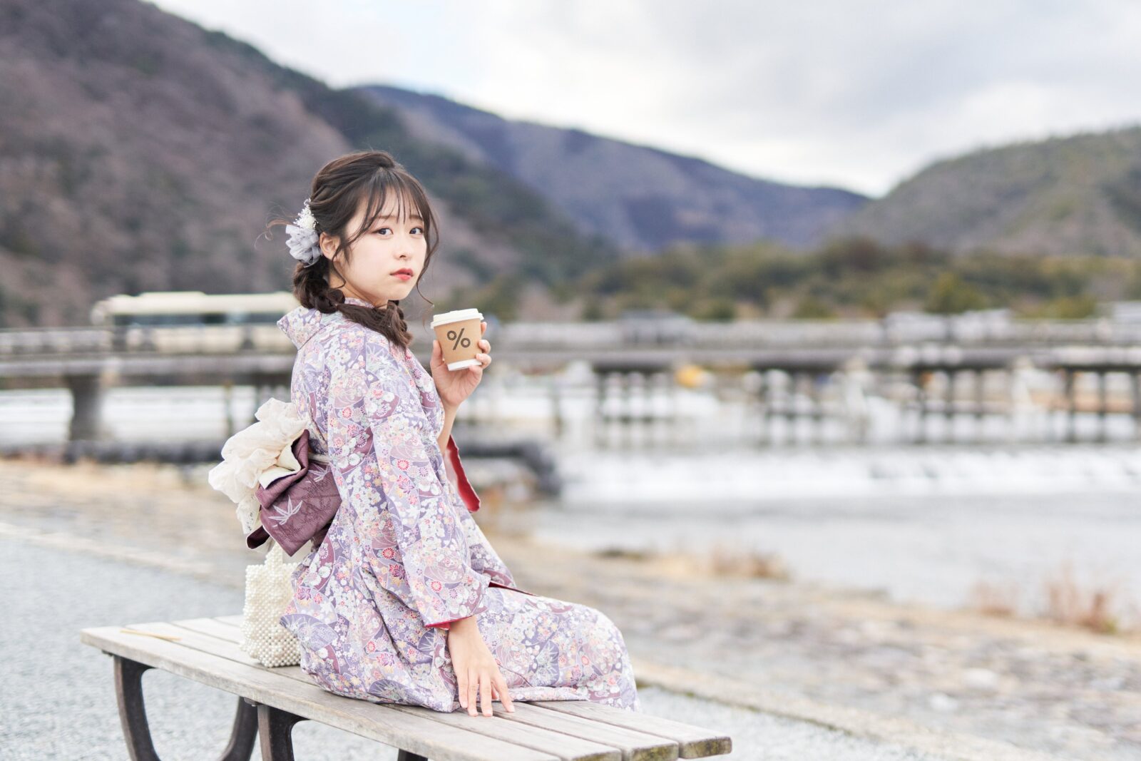 京都嵐山での着物撮影。