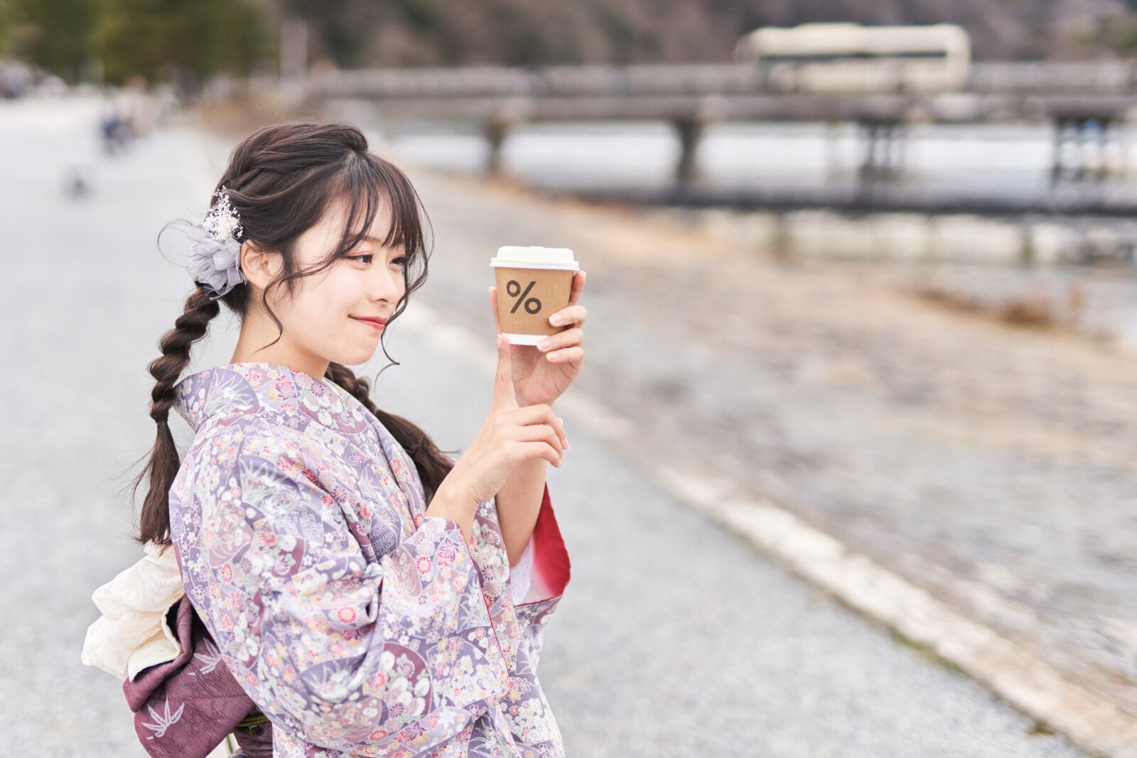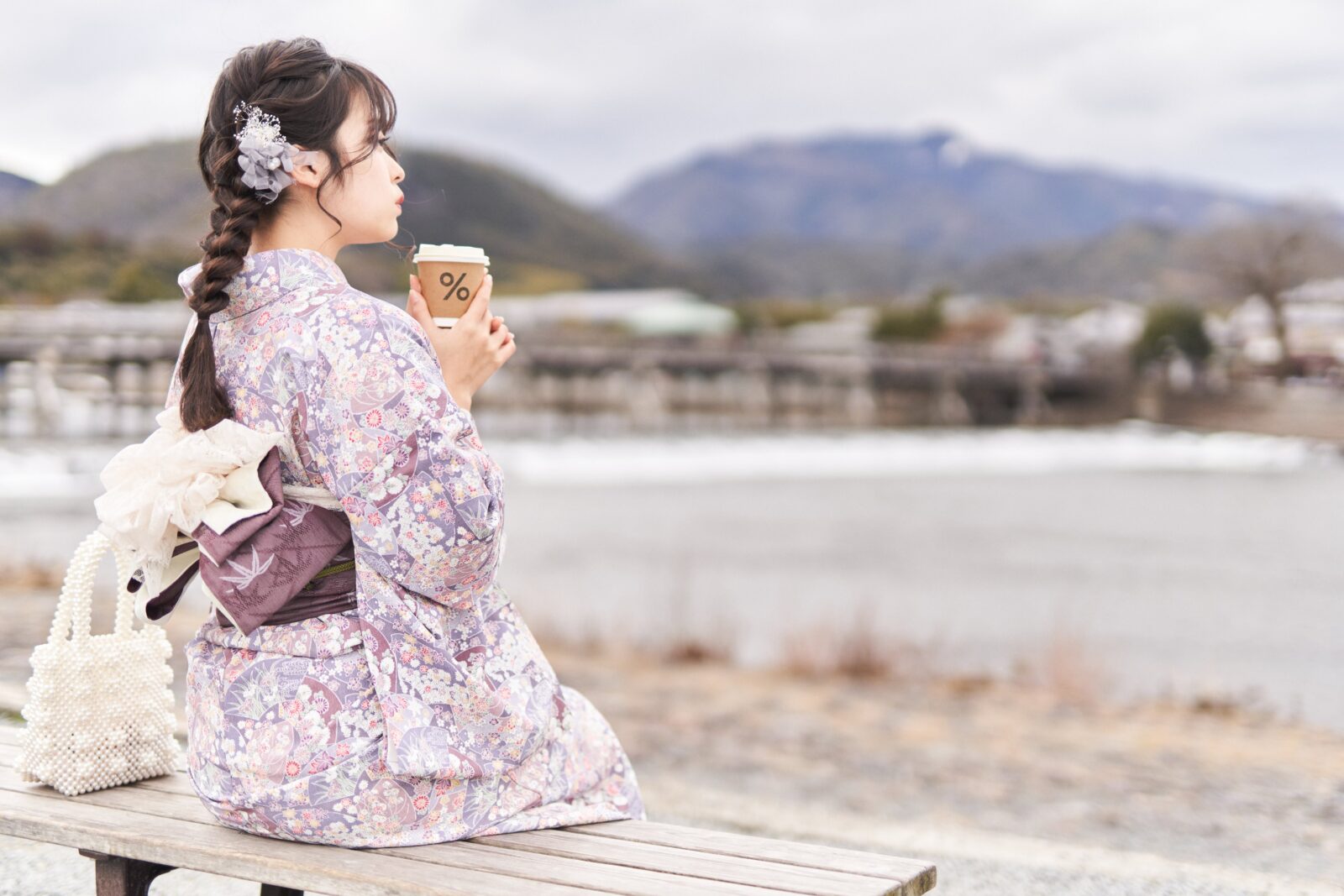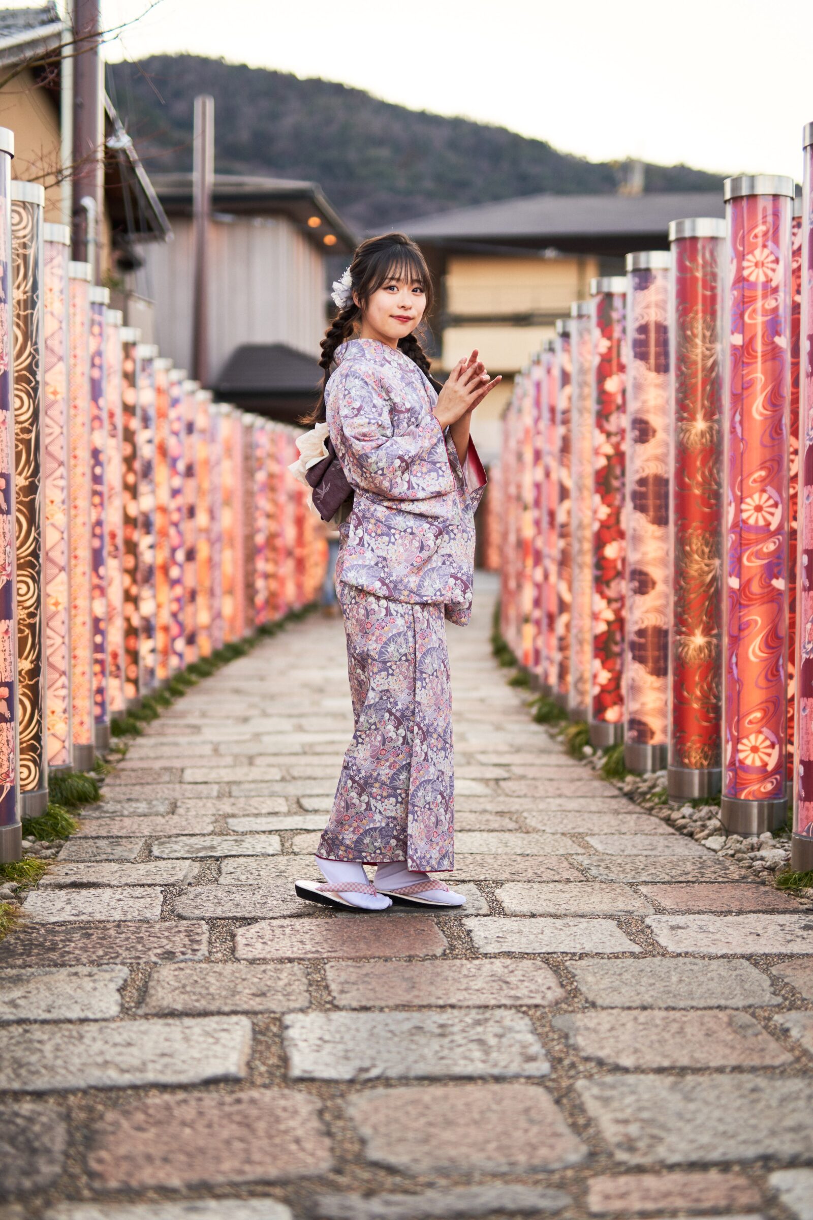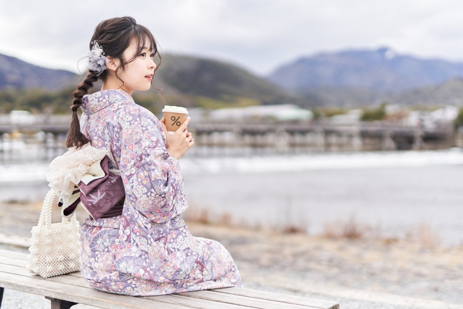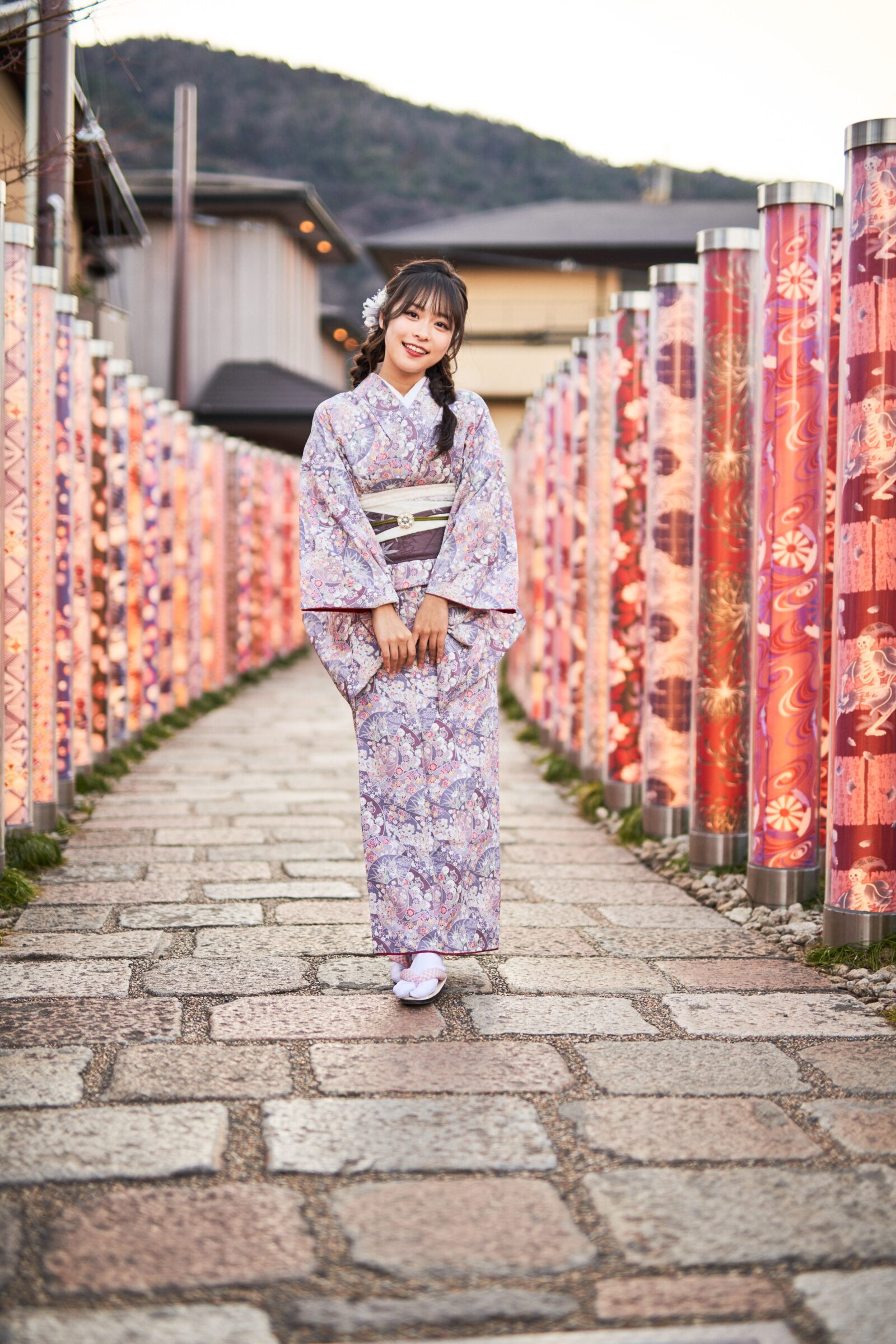 京都嵐山での着物撮影。