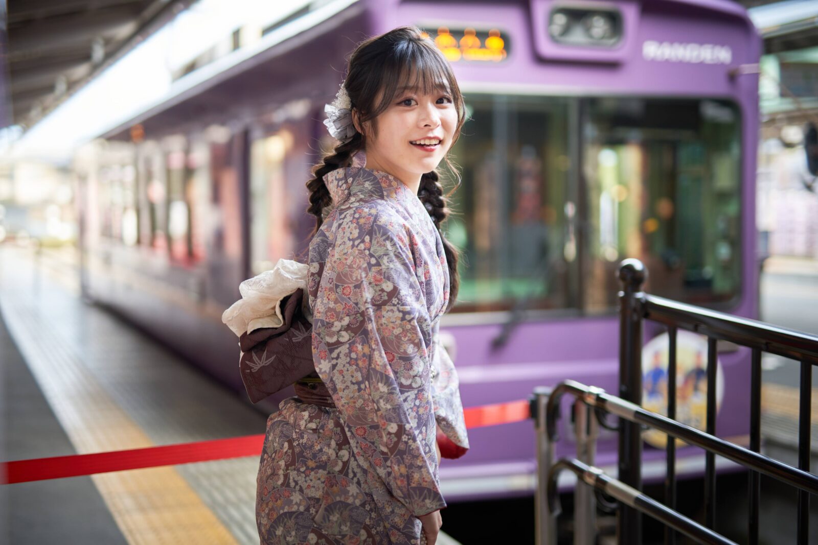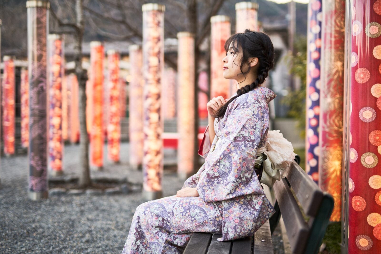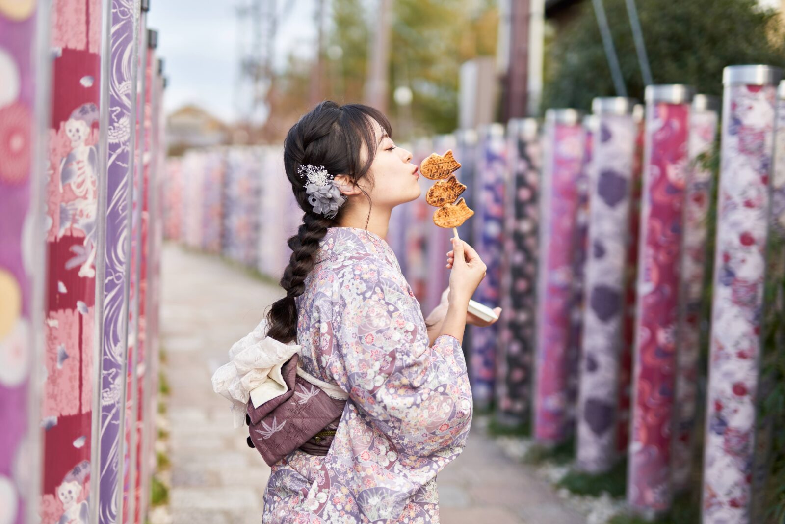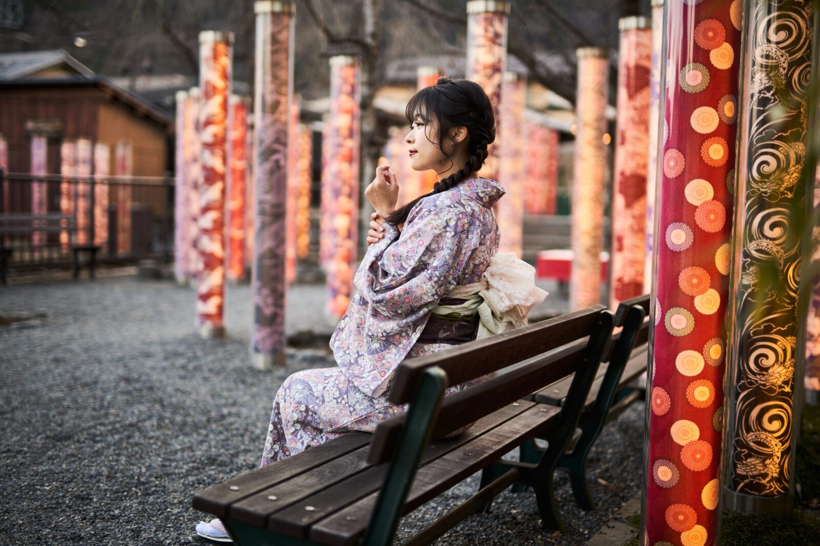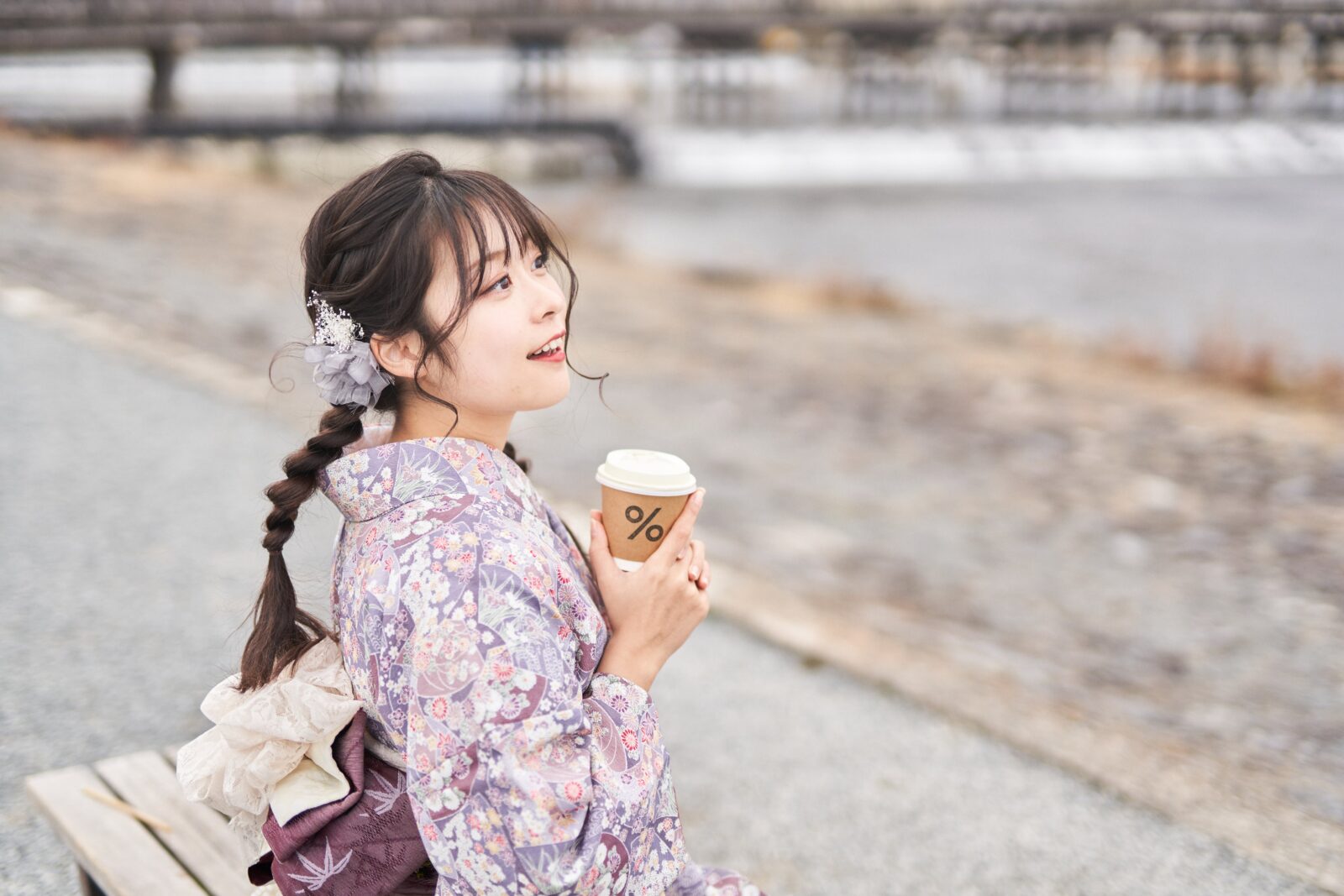 京都嵐山での着物撮影。