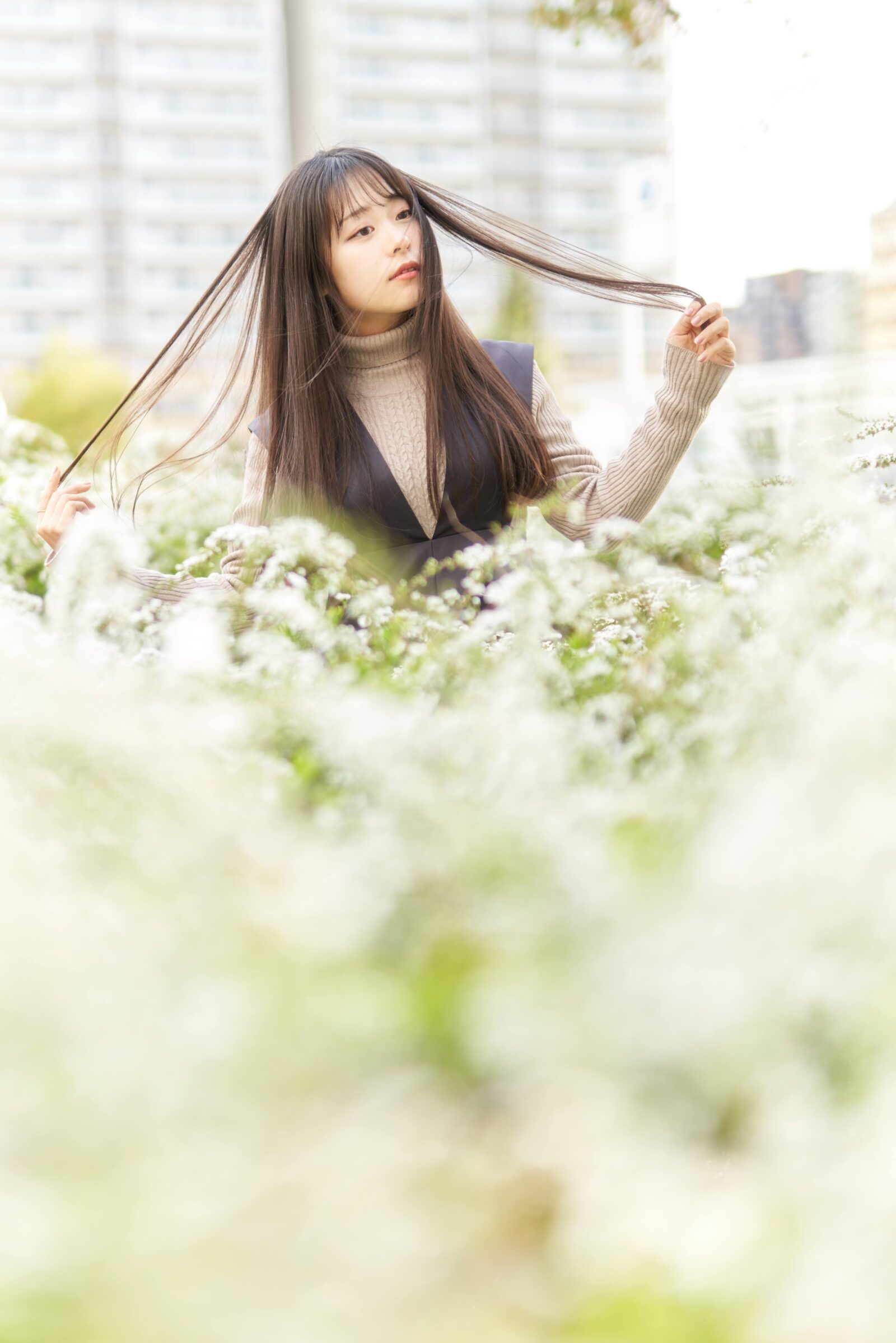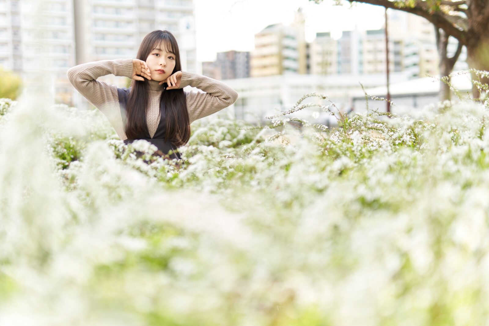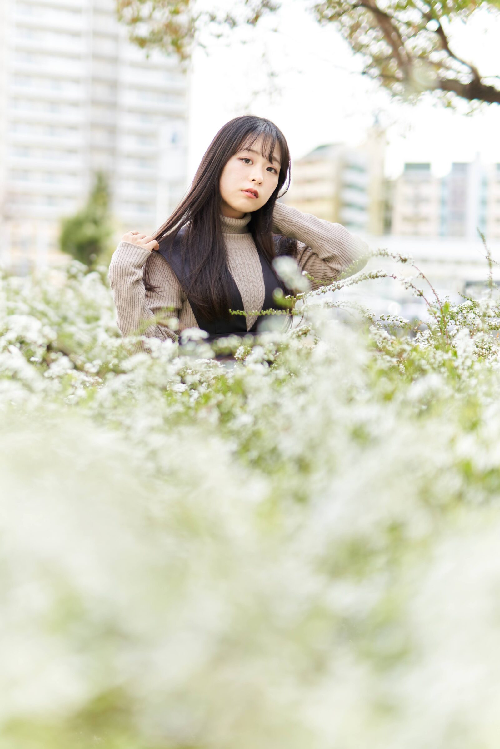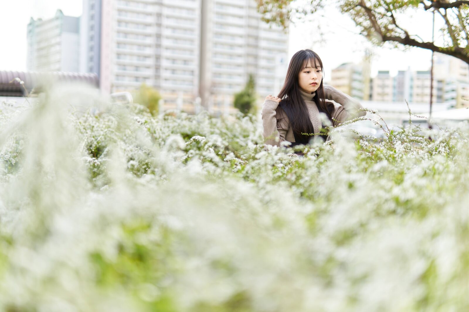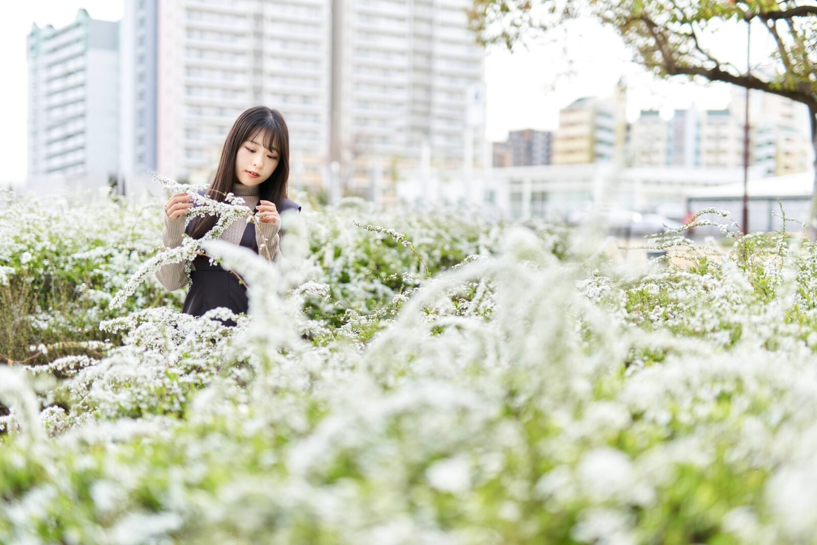 神戸六甲アイランドでチューリップとか桜とか雪柳とかで撮影。